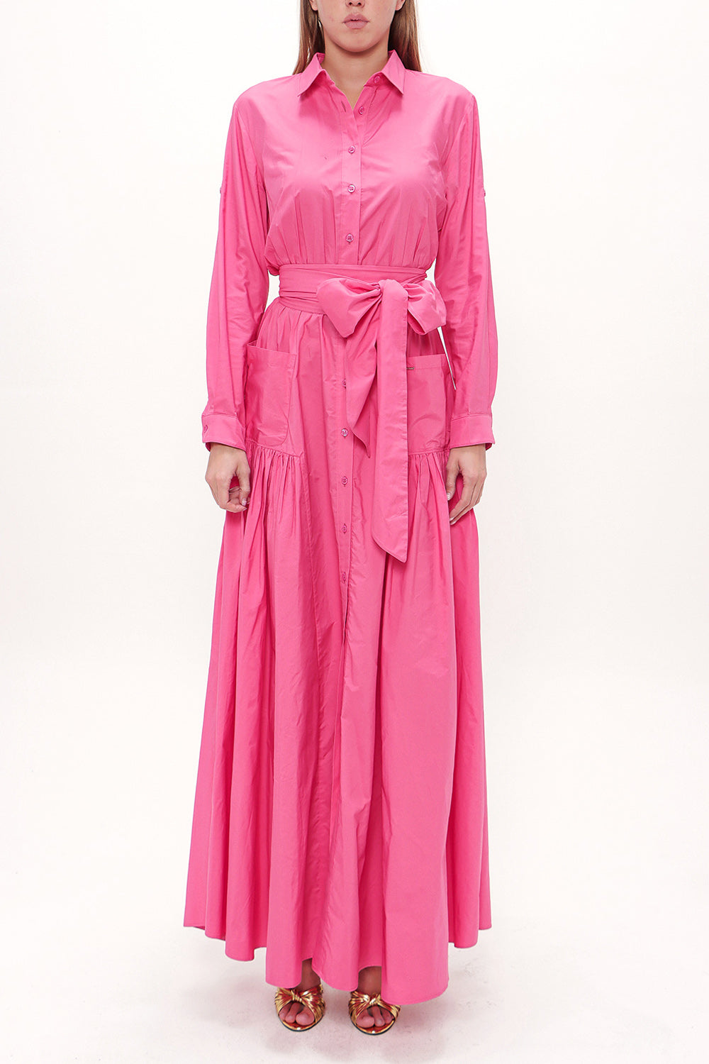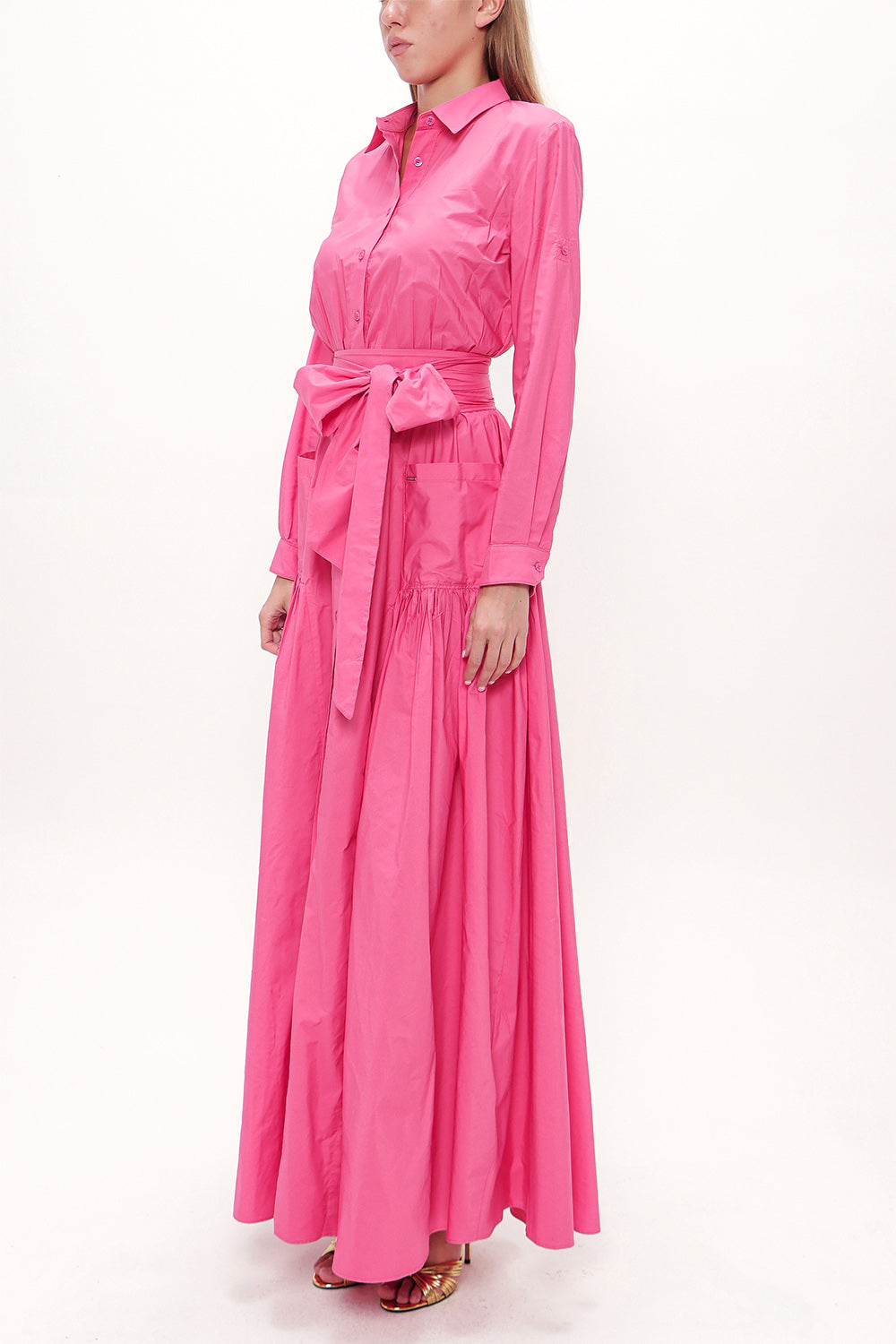 Dark Pink Pleated detail maxi dress 93131