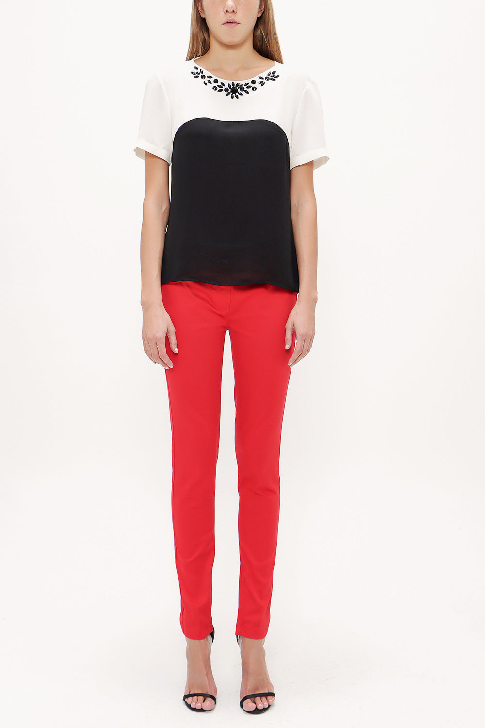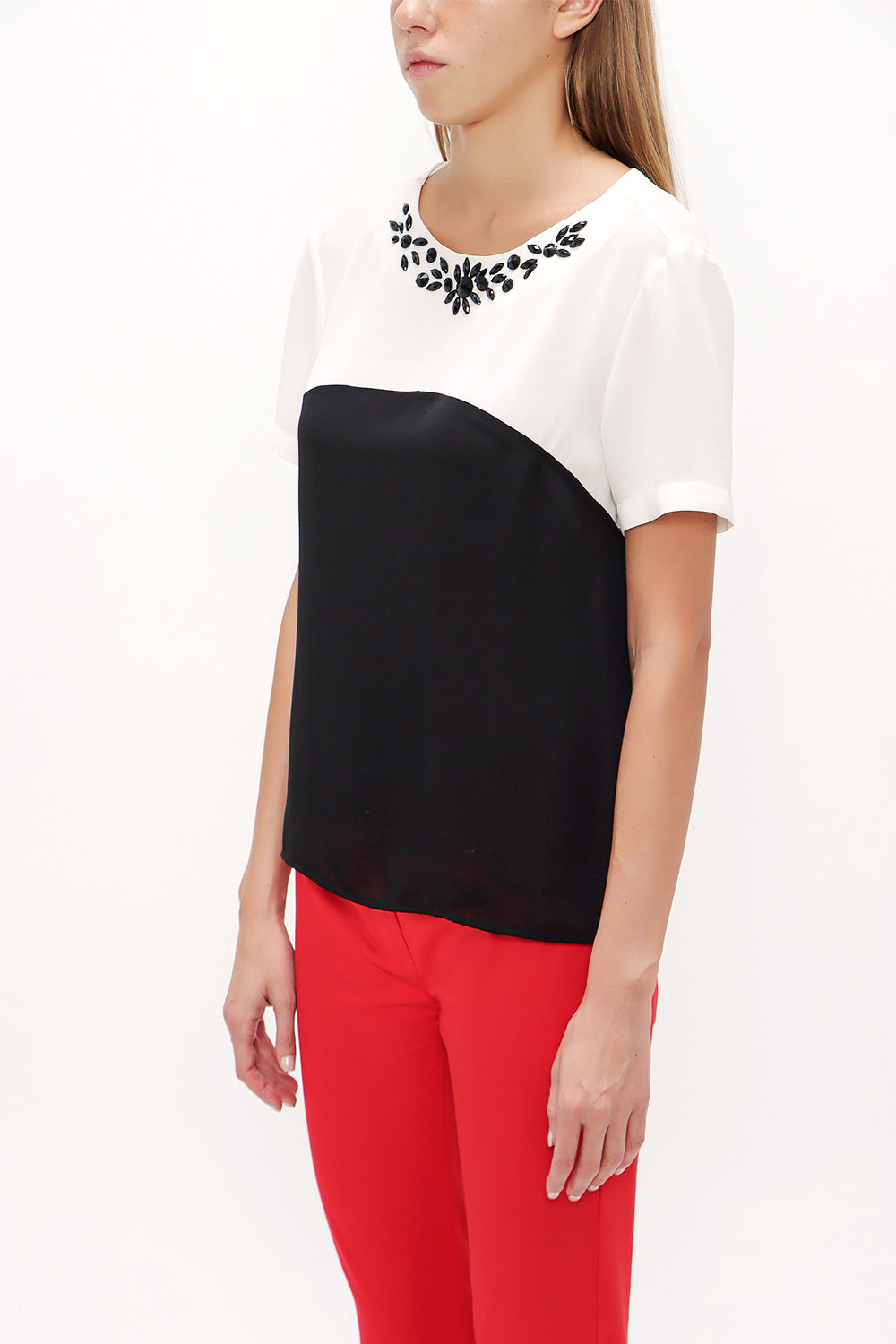 Ecru Black Gem embroidered neck blouse 19188