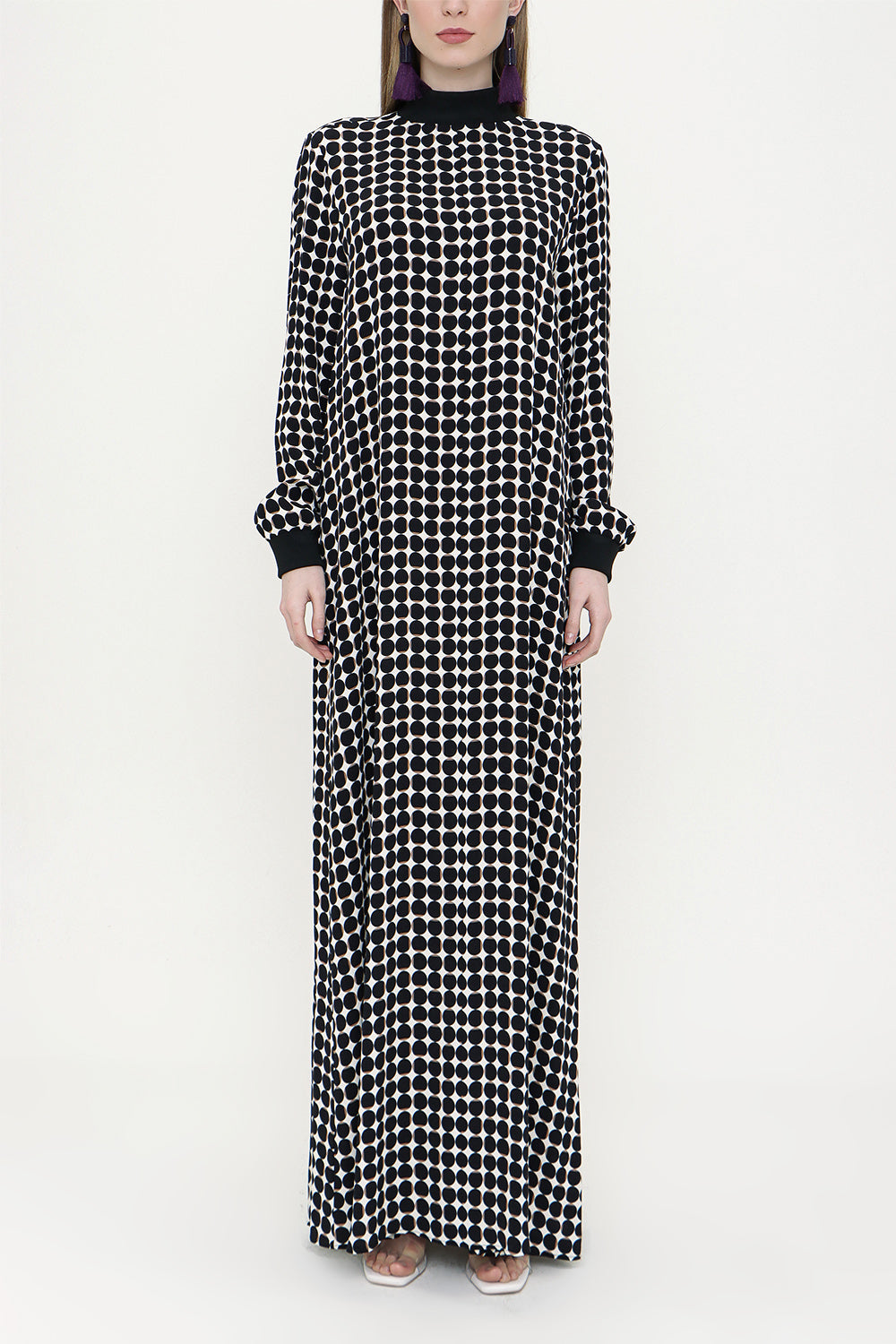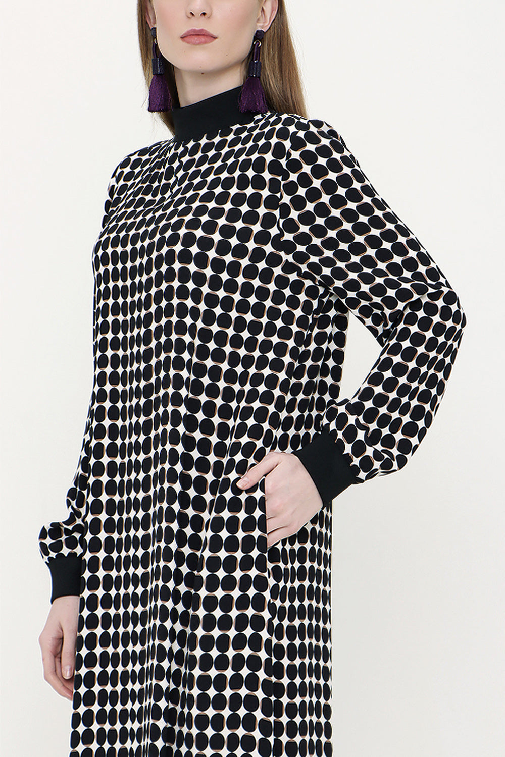 Ecru Black Ribbed loose fit dress 93715
