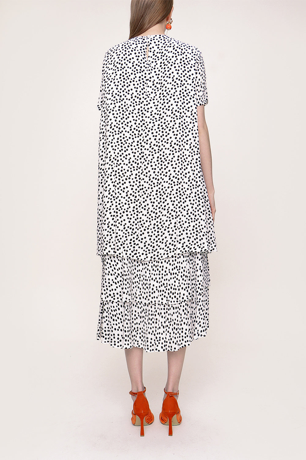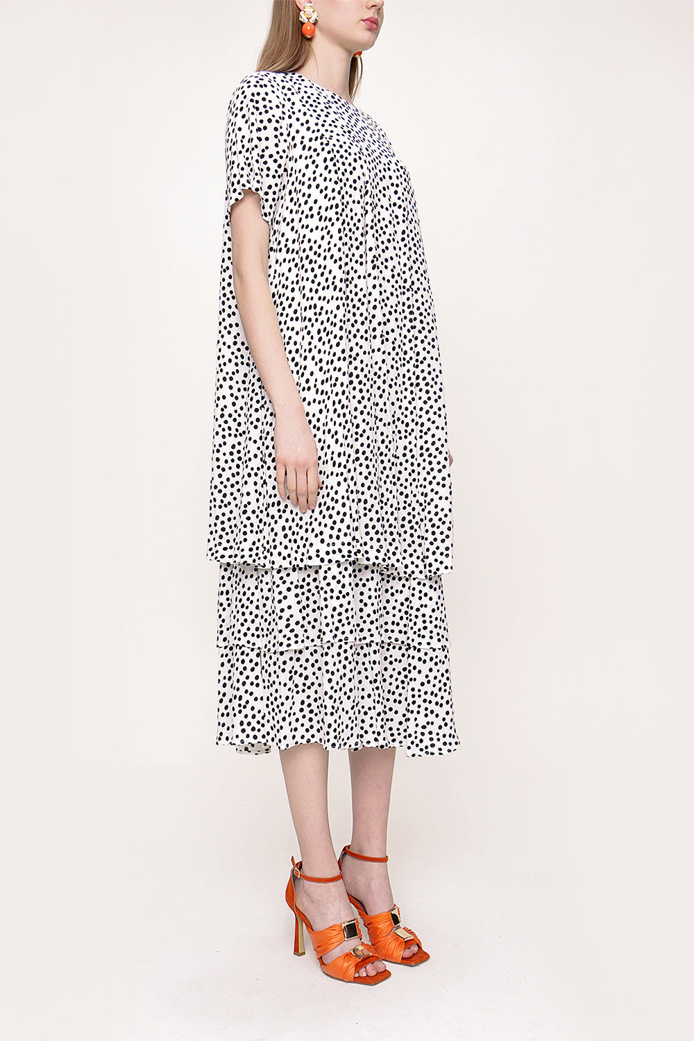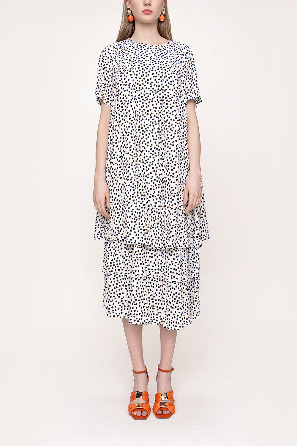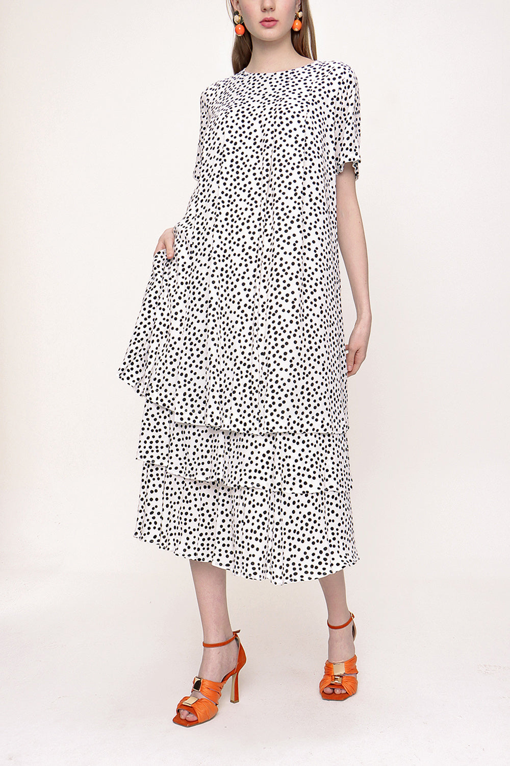 Ecru Black Ruffled loose-fitting short sleeve dress 93388