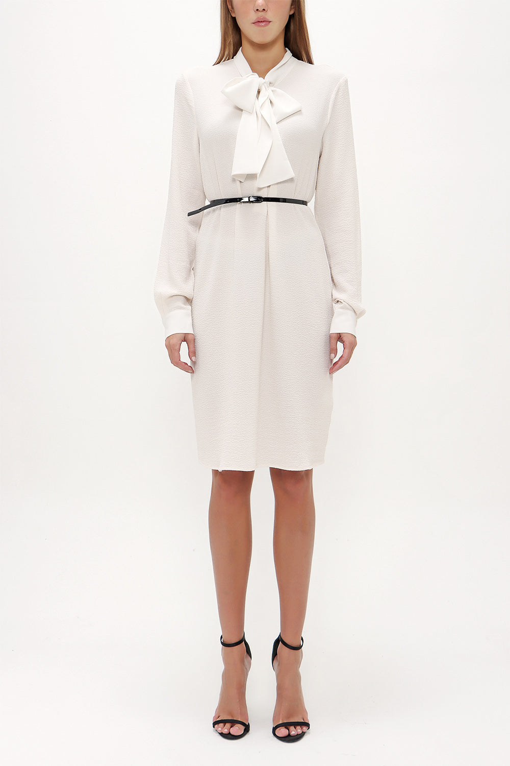 Ecru Crepe mini dress with bowtie on the neck 91355