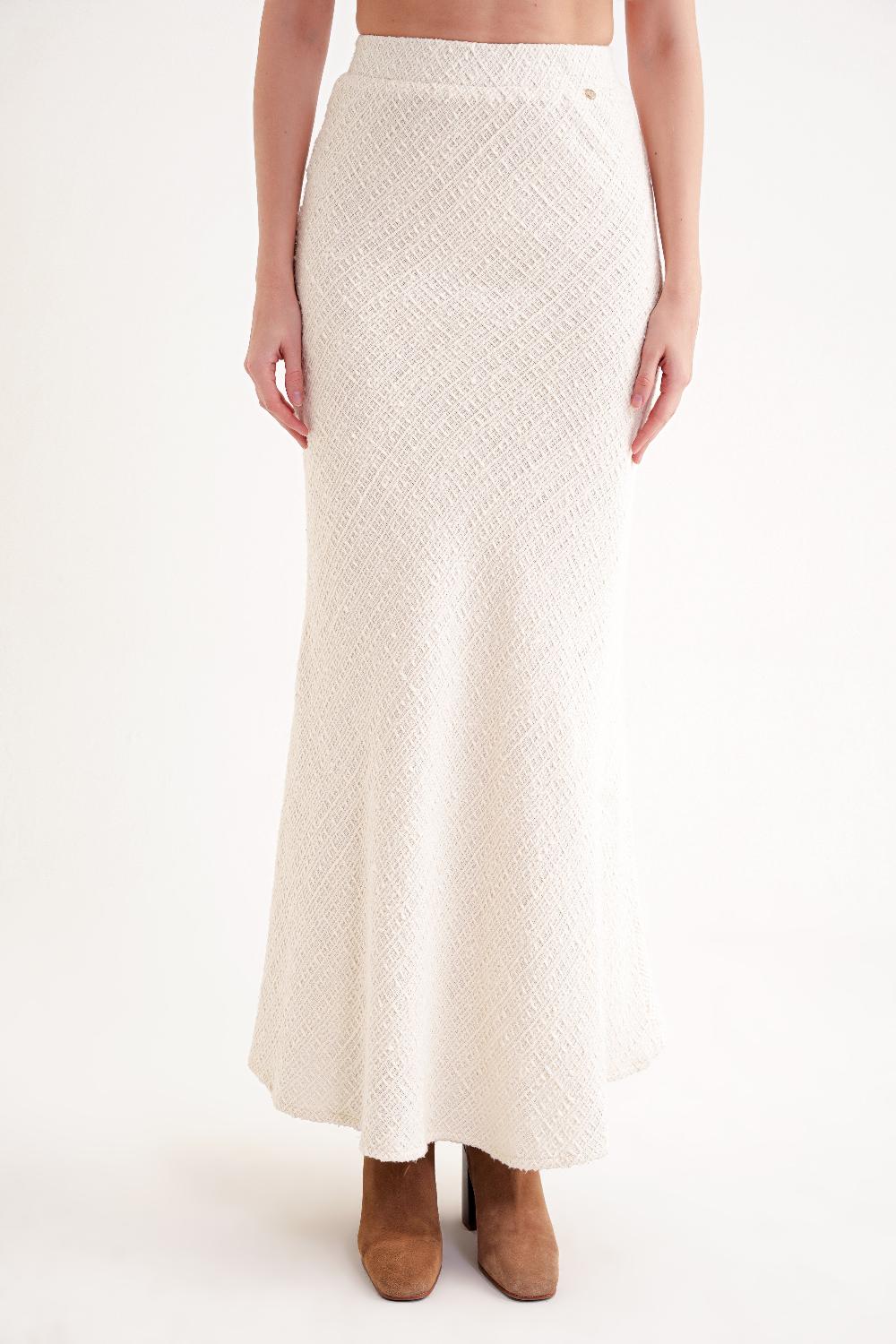Ecru Elastic waist long skirt 81338