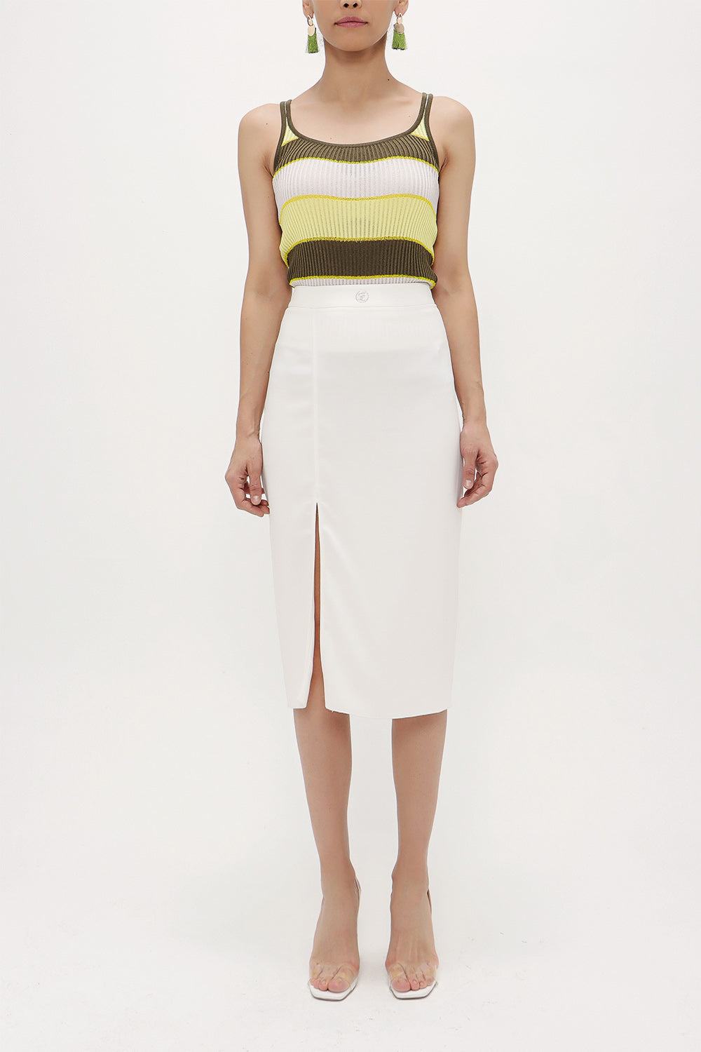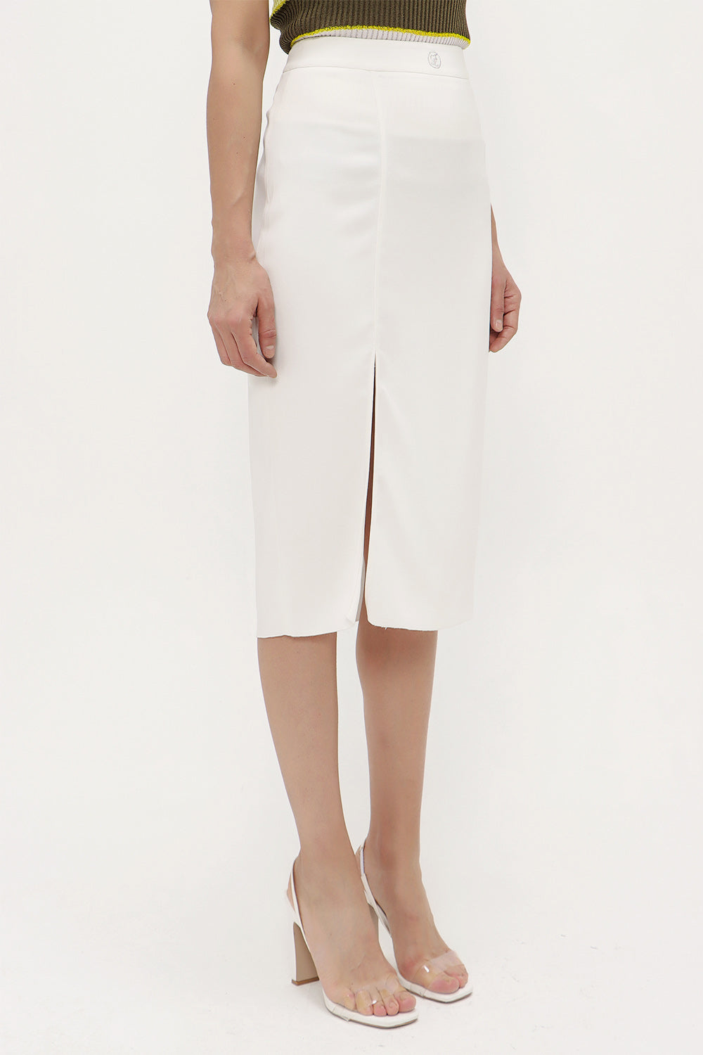 Ecru High waist deep slit skirt 80619