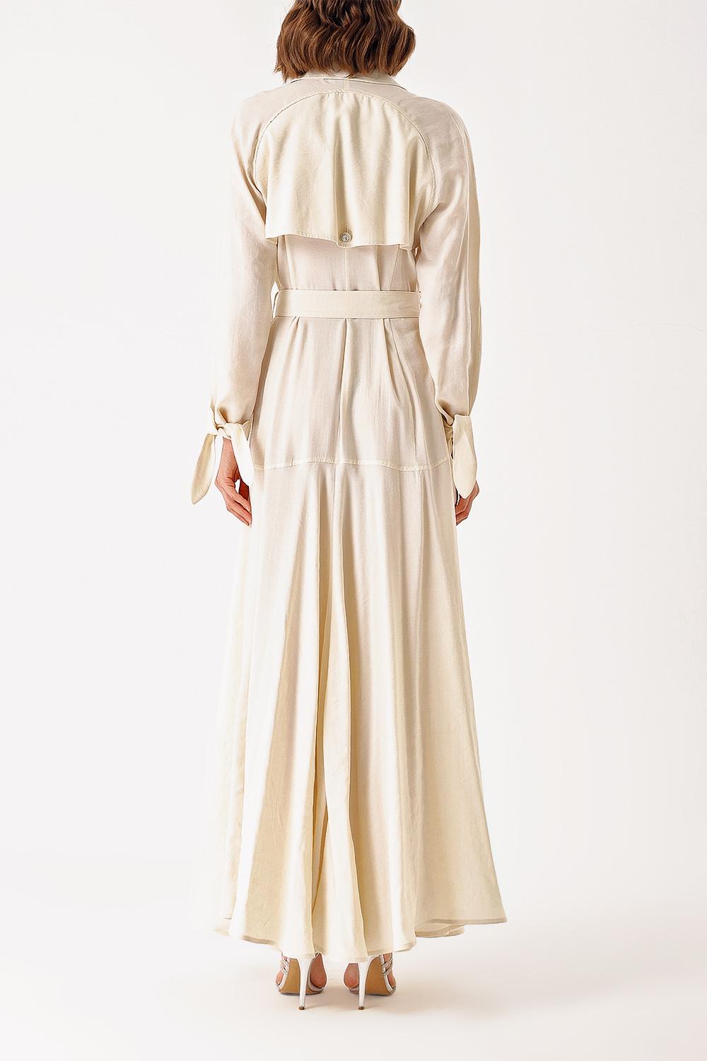 Ecru Long trench dress with crystal button detail 94400