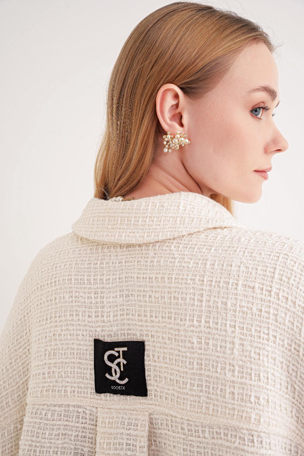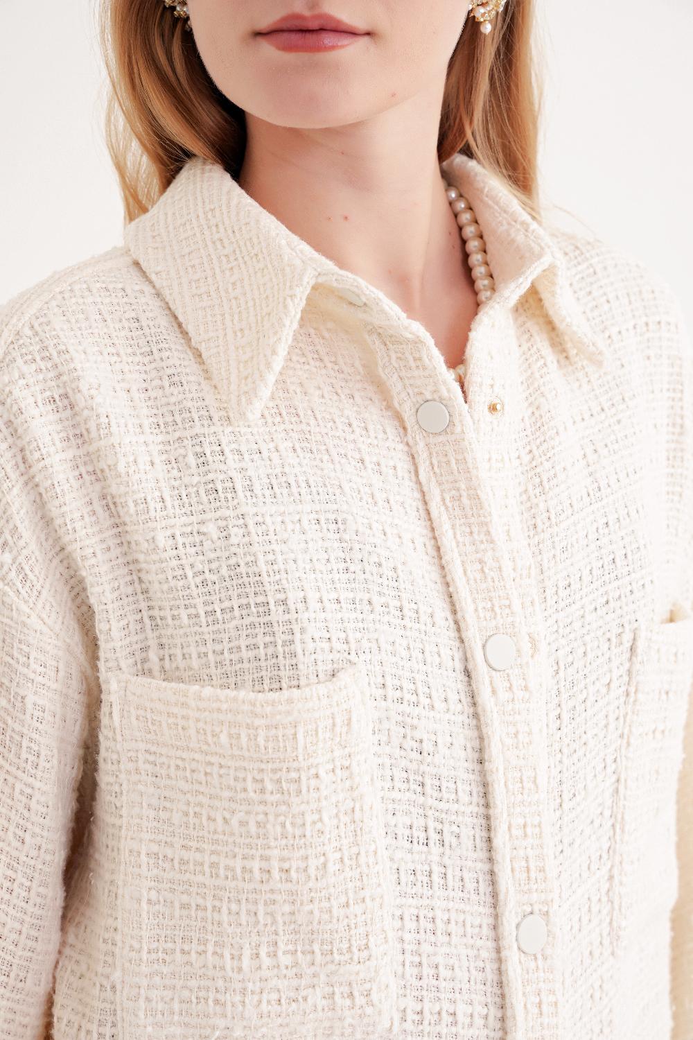 Ecru Loose fit snap-detailed shirt 10859