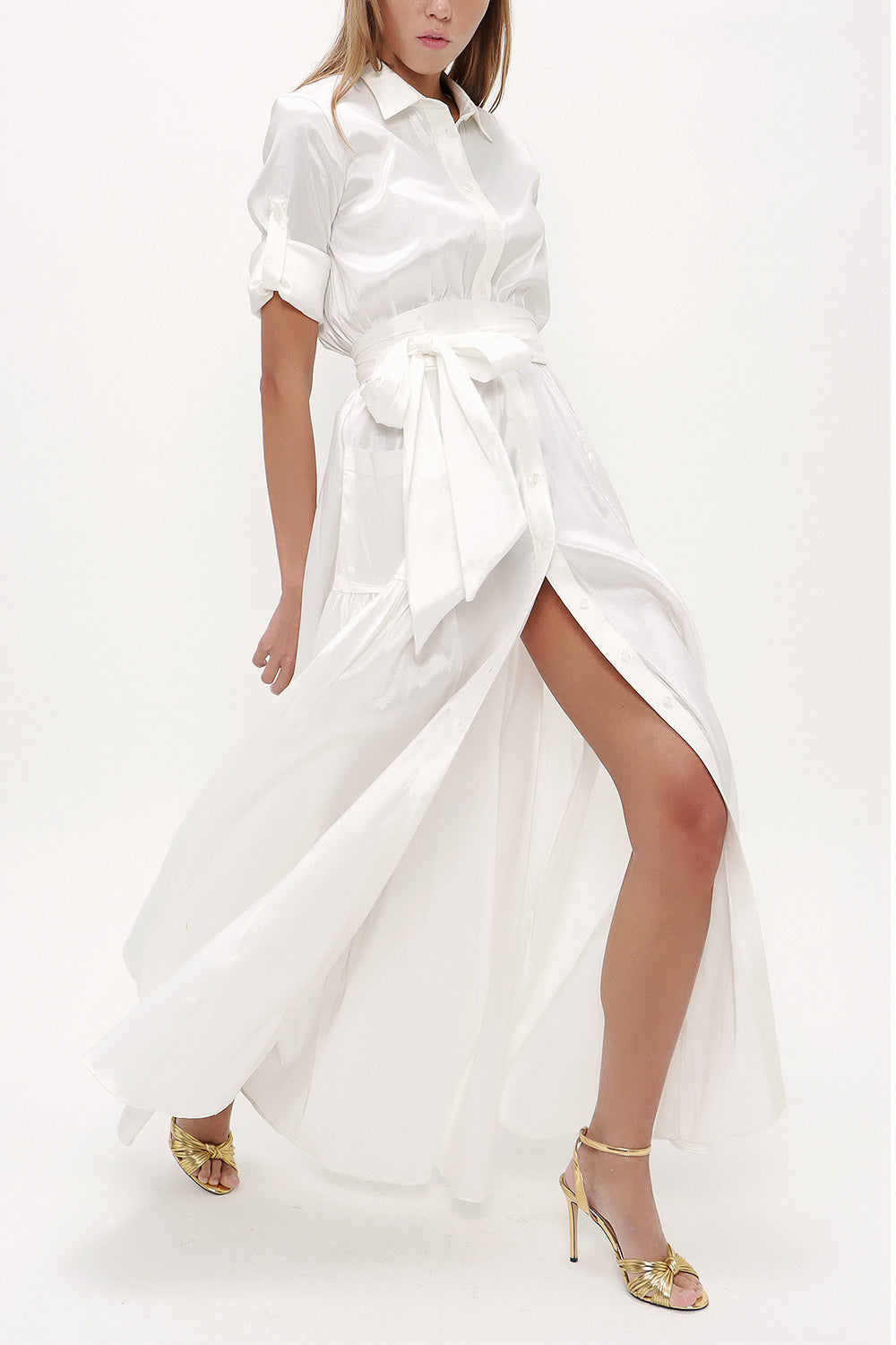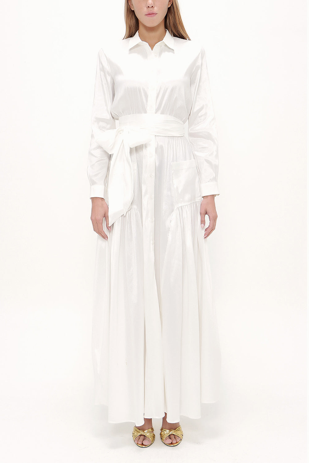 Ecru Pocket elastic maxi dress 92606