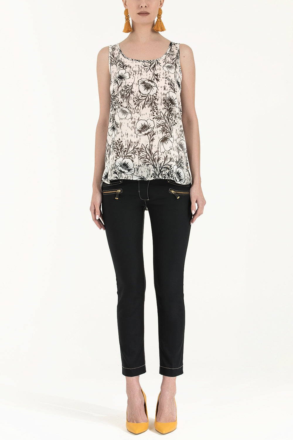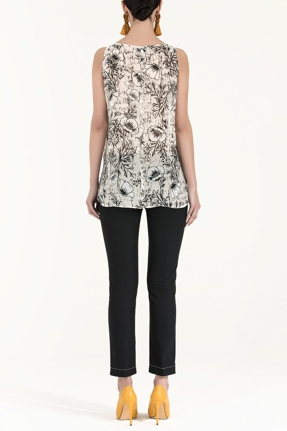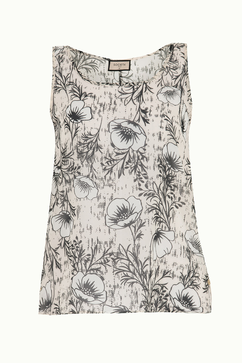 Ecru Printed wide cut sleeveless blouse 19692