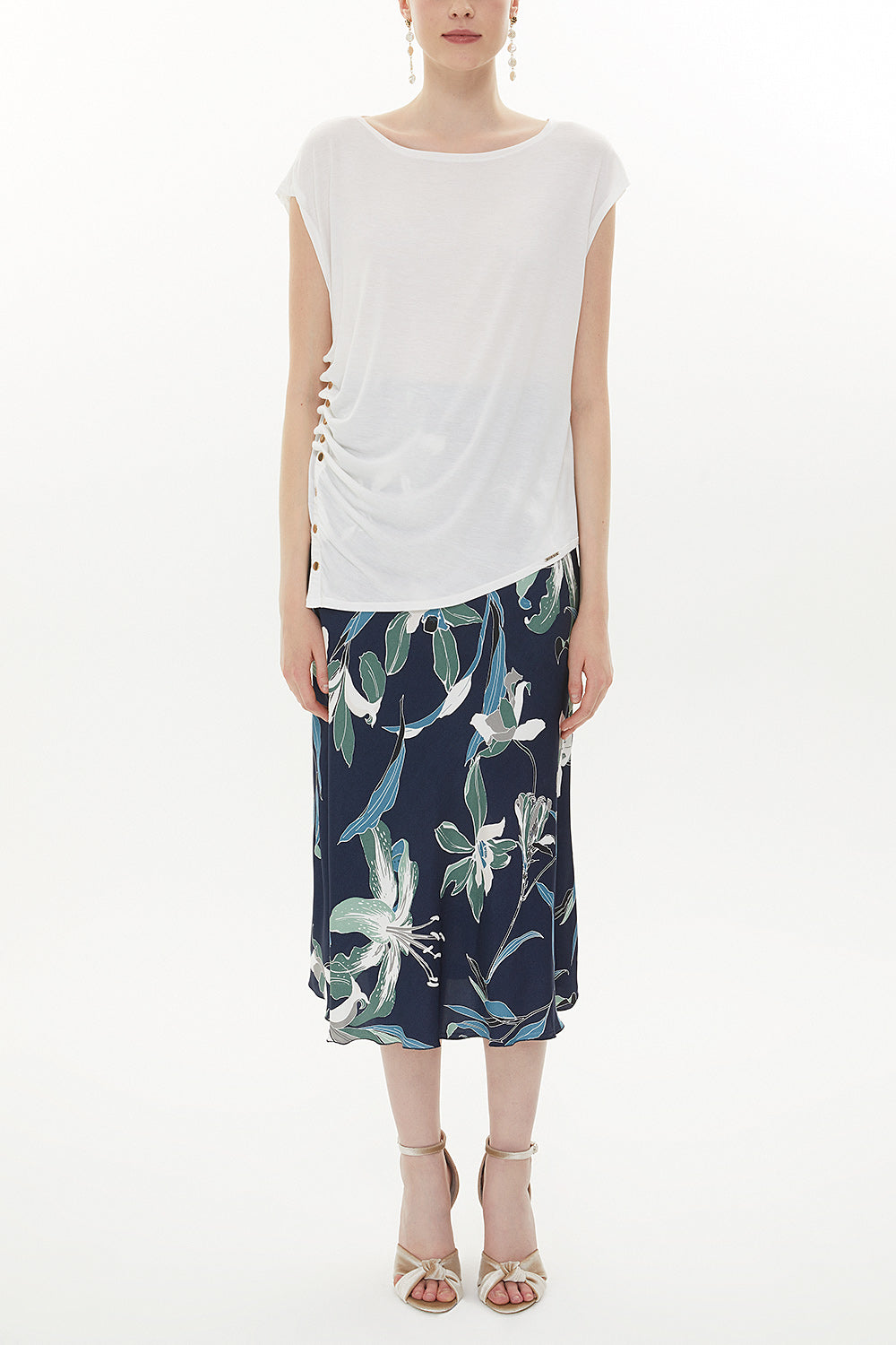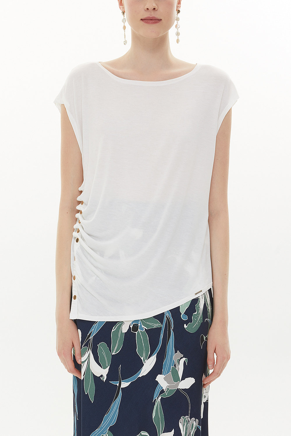 Ecru Snap fastener detail  shabby chic blouse  19817