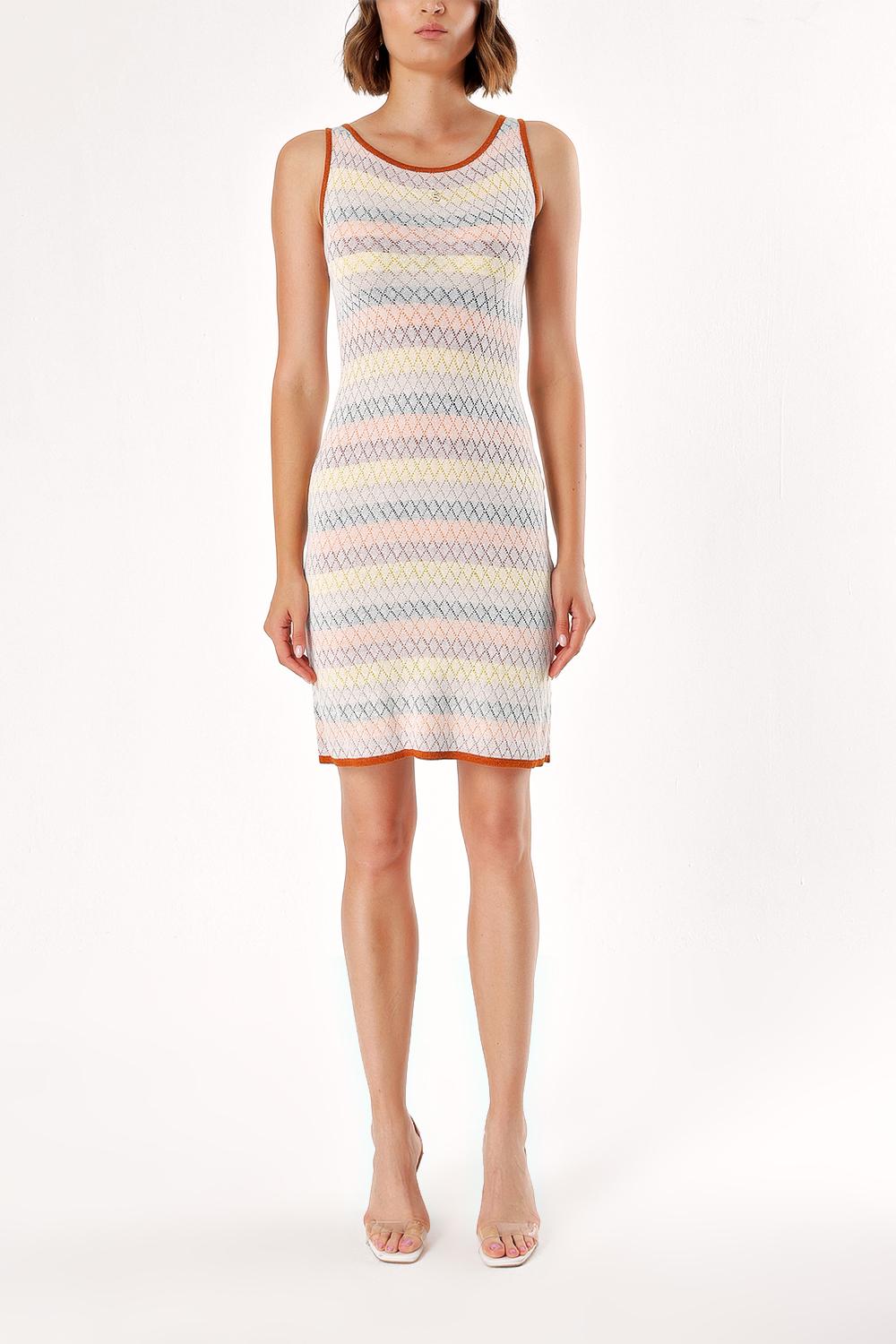 Ecru STRIPED KNITWEAR DRESS 28249