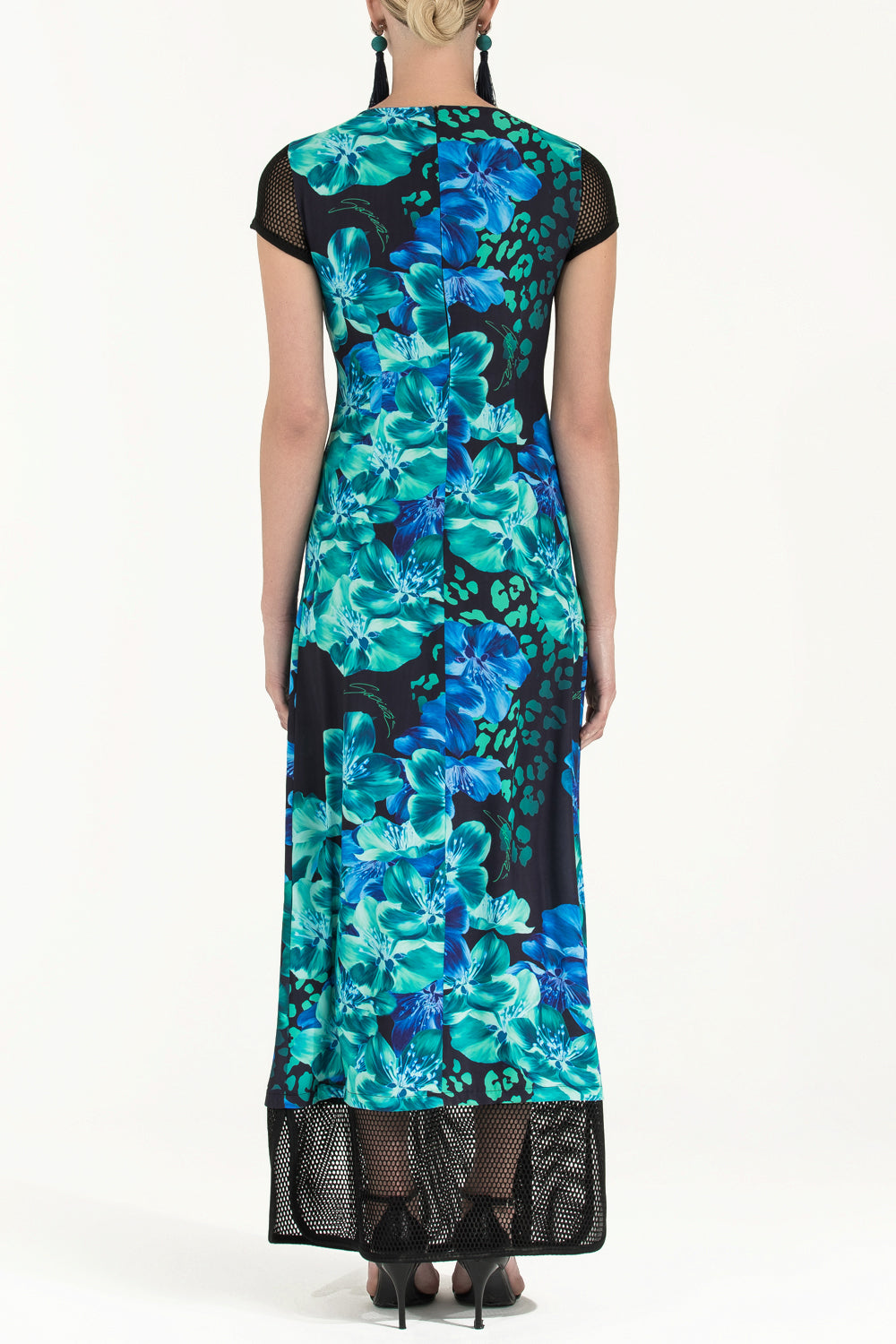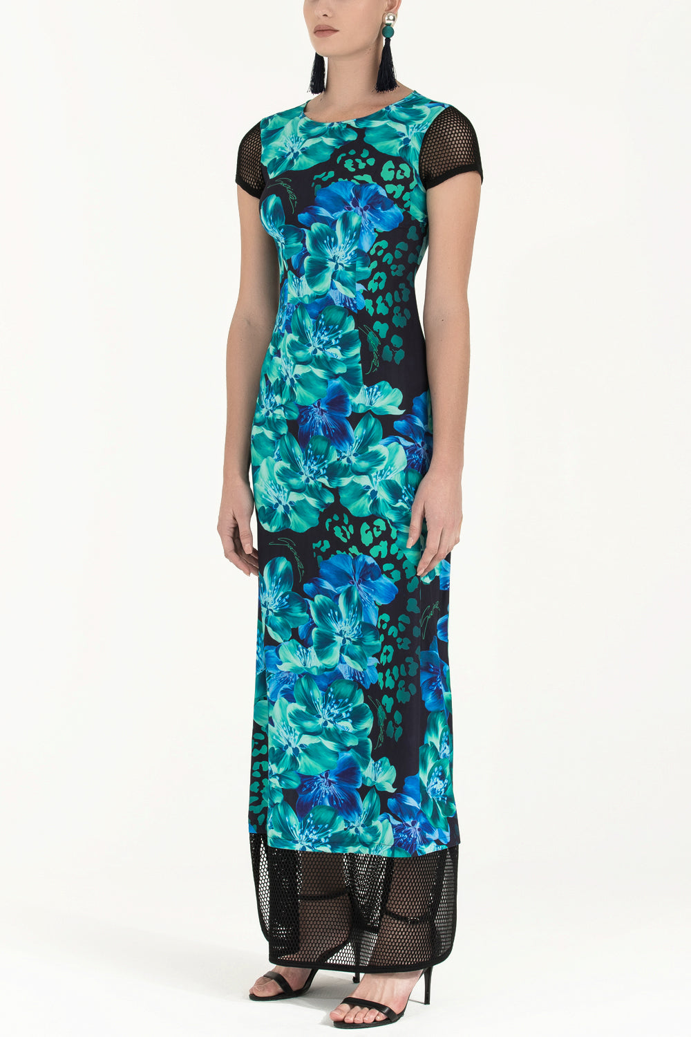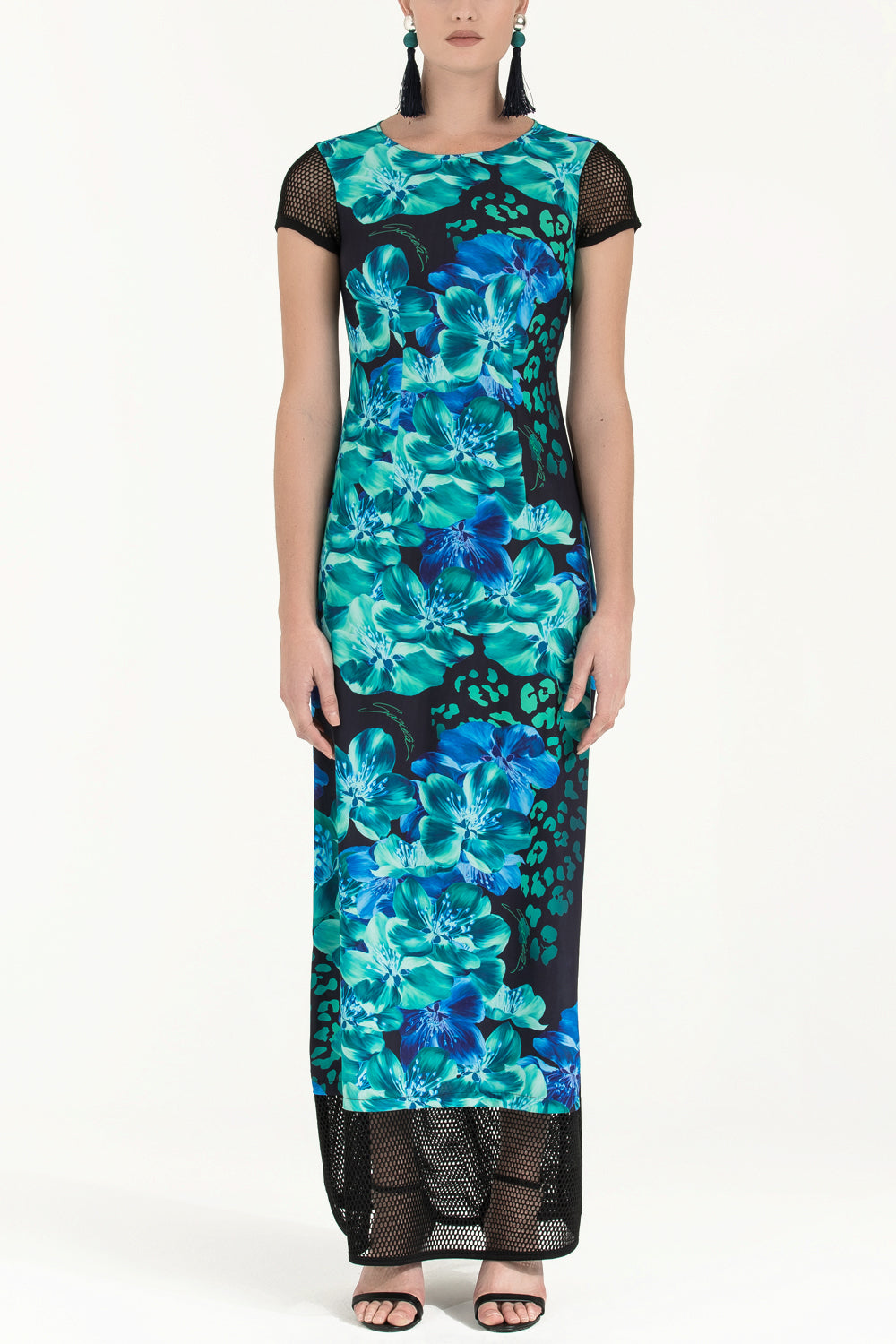 Exotic Flowers Net fabric mix Printed maxi dress 91435