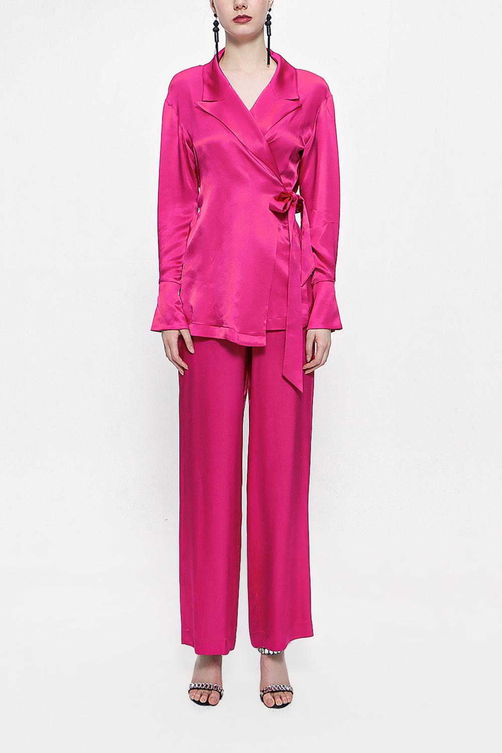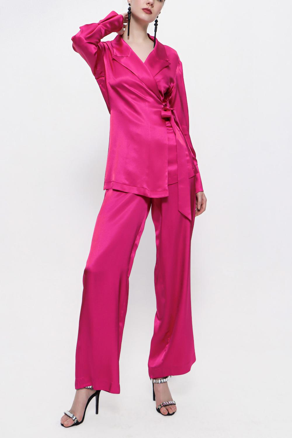 Fuchsia Double suit with loose-fitting jacket 12282