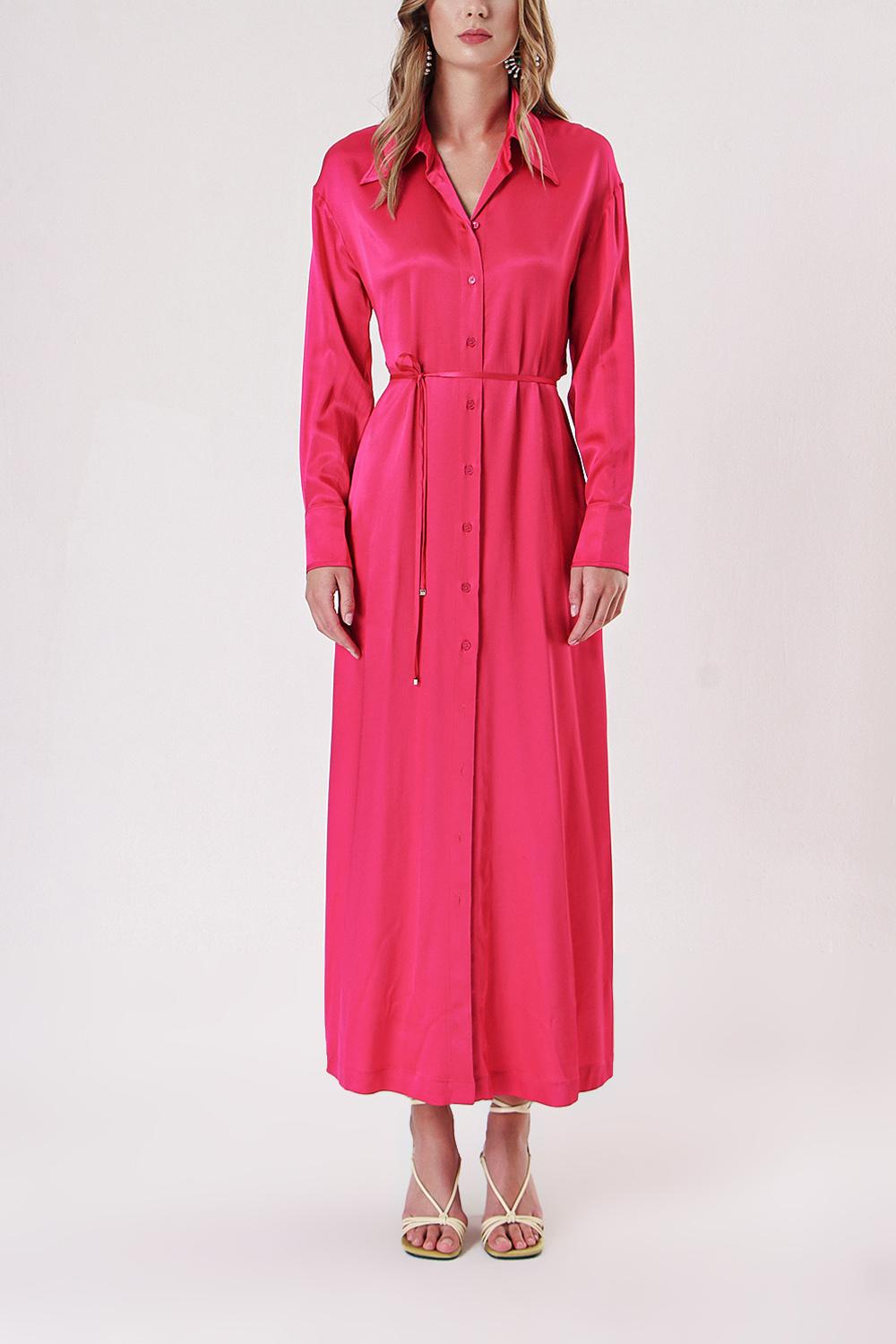 Fuchsia Fitted waist shirt dress with details blousan on the back 94178