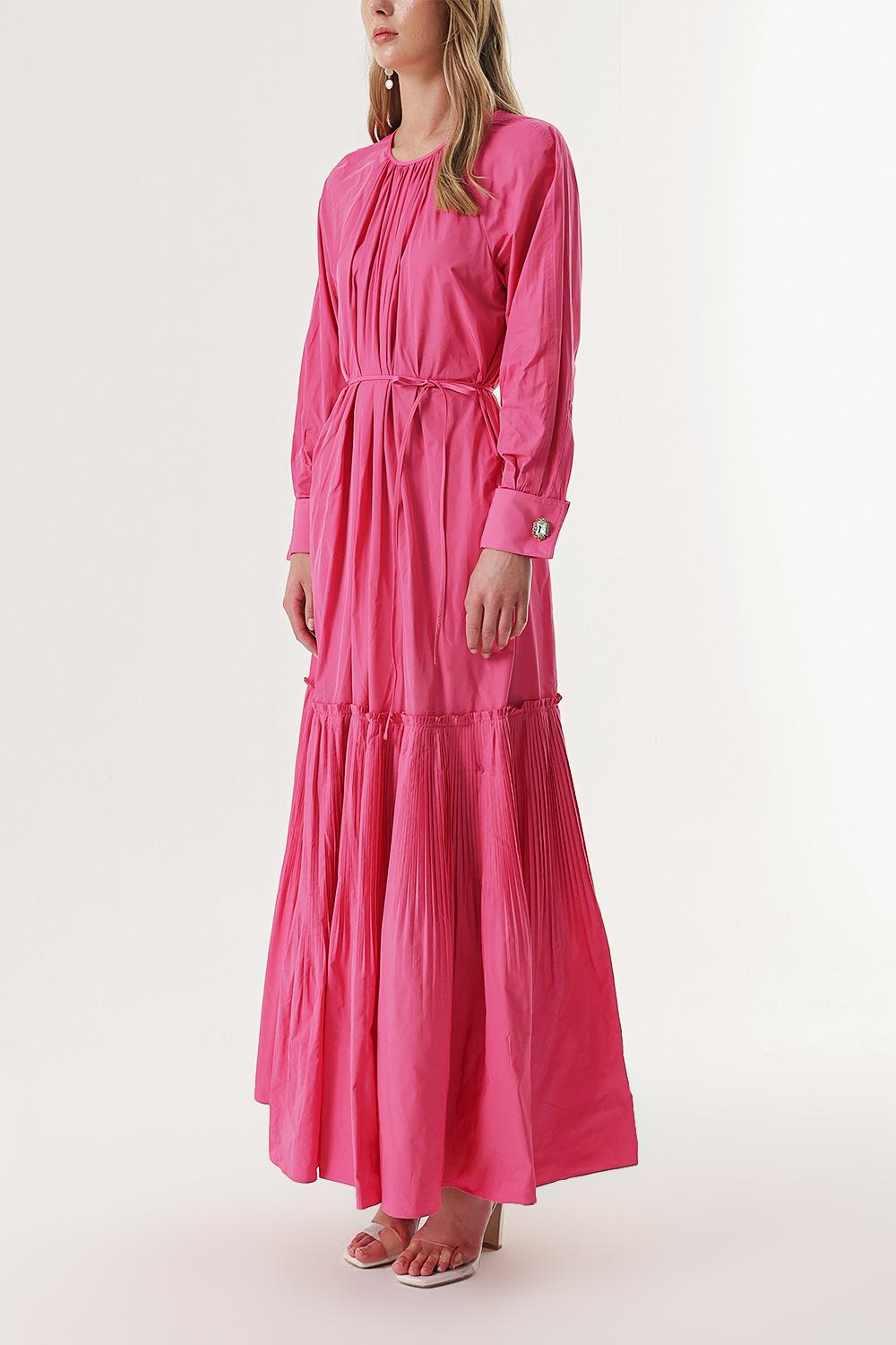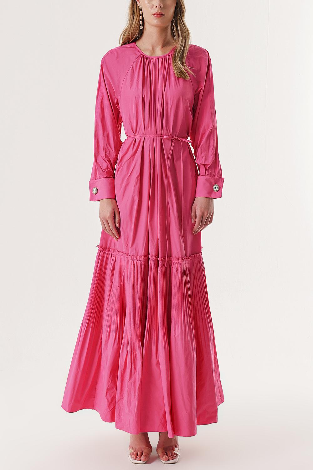 Fuchsia Pleated detail cufflink loose-fit dress 94197