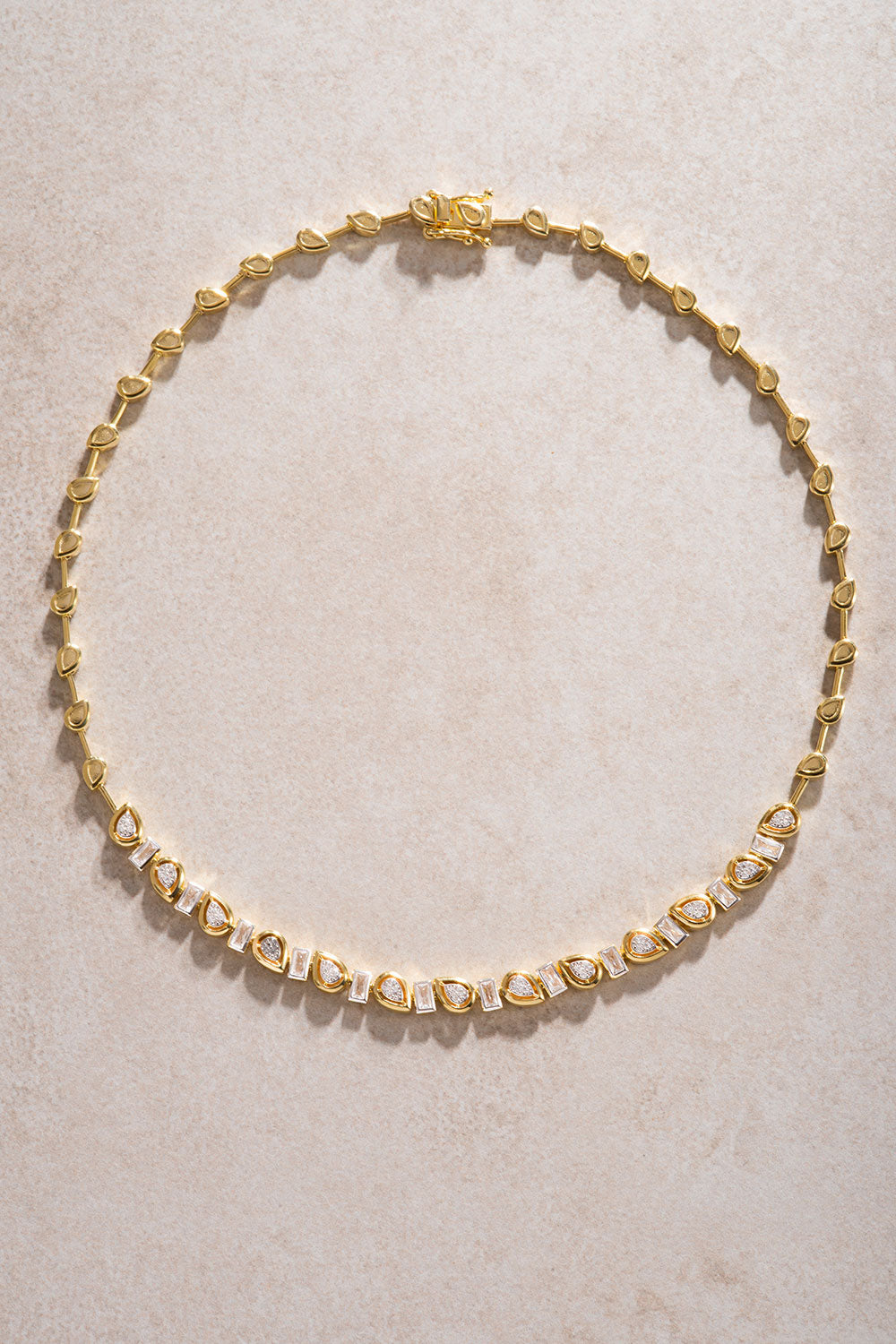 Gold Baguette and stone detailed 925 sterling silver necklace 11