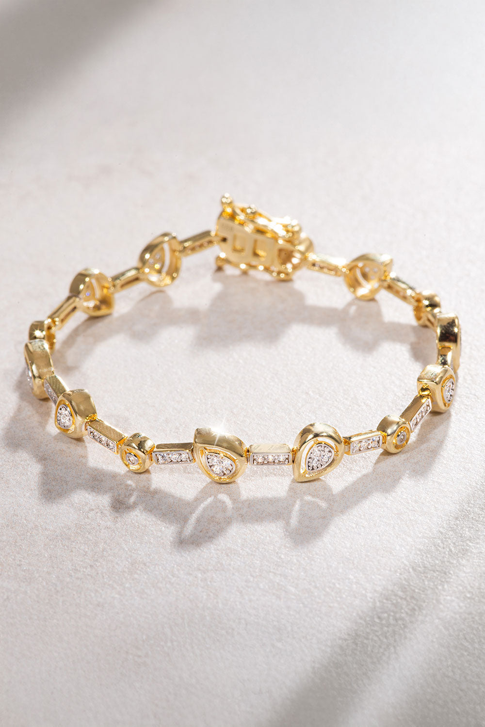 Gold 925 sterling silver bracelet with baguette and crystal stone details 21