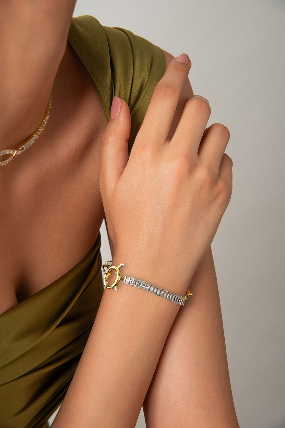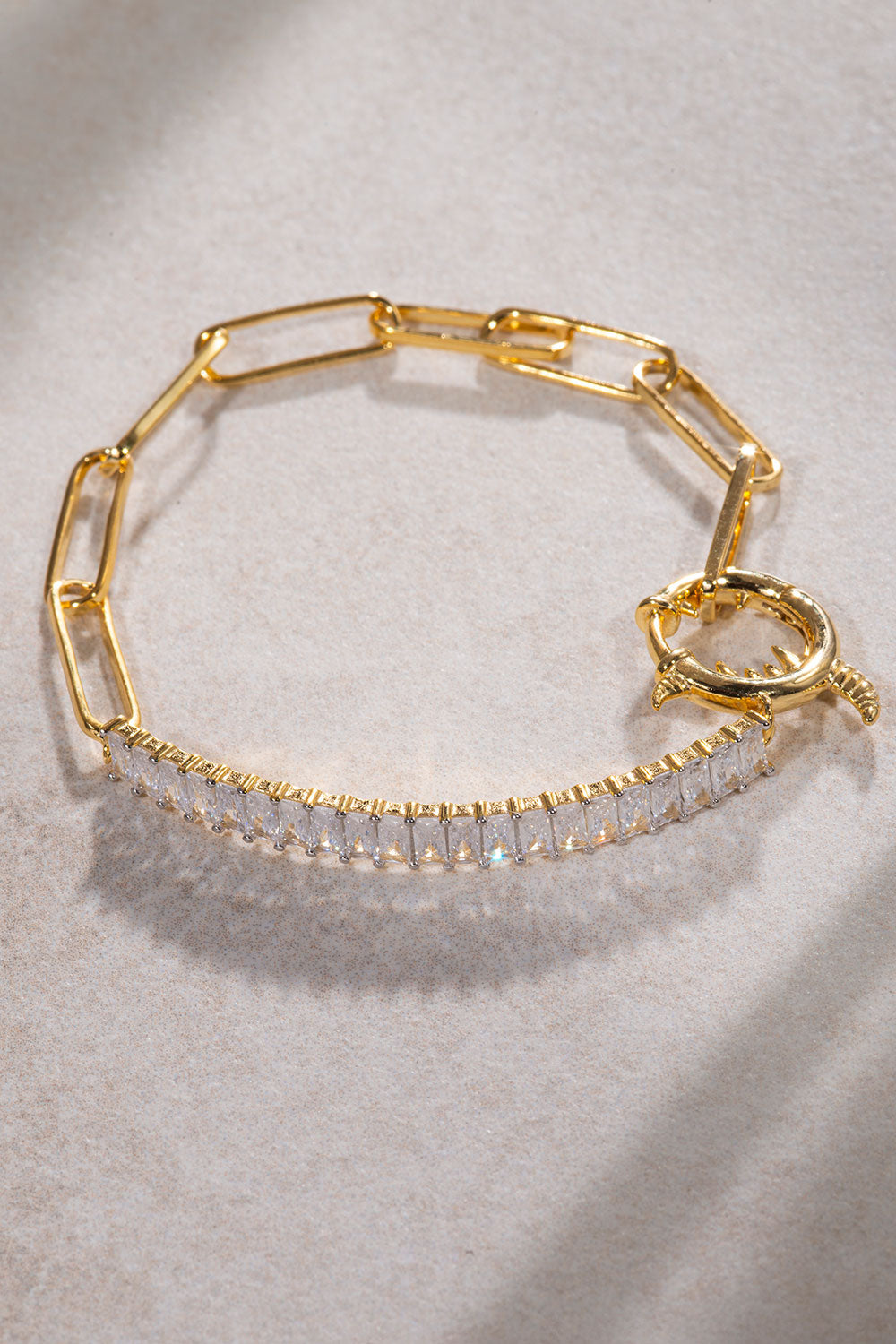Gold 925 sterling silver chain and crystal stone detailed bracelet 23