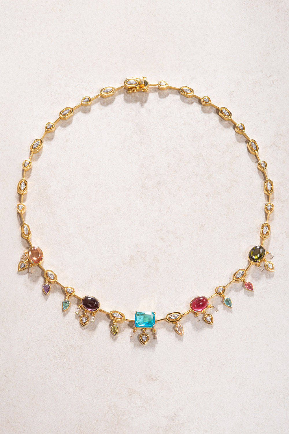 Gold 925 sterling silver colored crystal stone detailed necklace 13