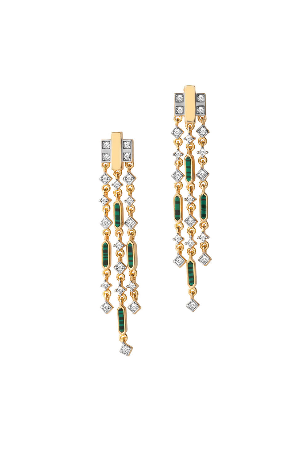 Gold 925 sterling silver dangling earrings with green accents and crystal stones 137