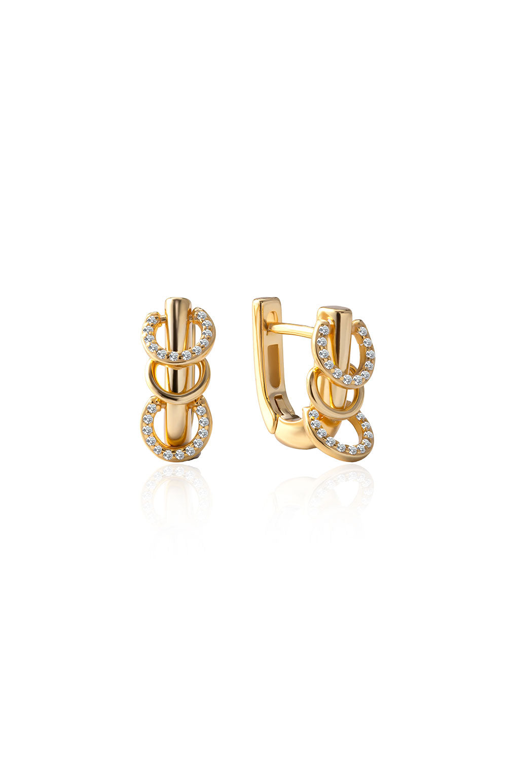 Gold 925 sterling silver earrings with hoop design details and crystal stone embellishments 108