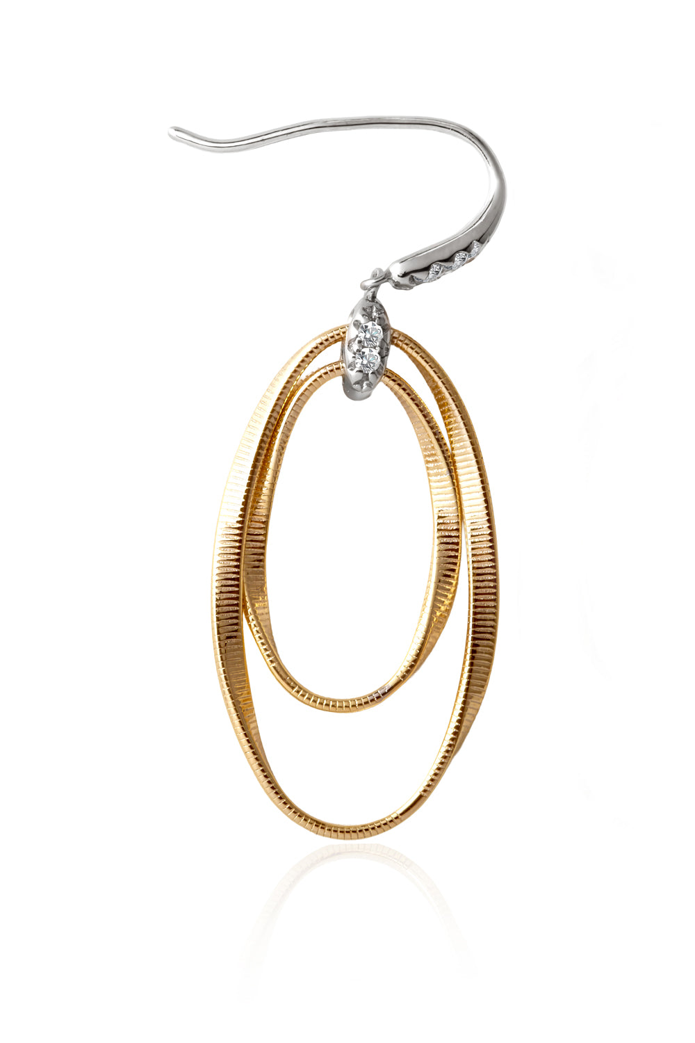 Gold 925 sterling silver earrings with interlocking oval hoop design 163