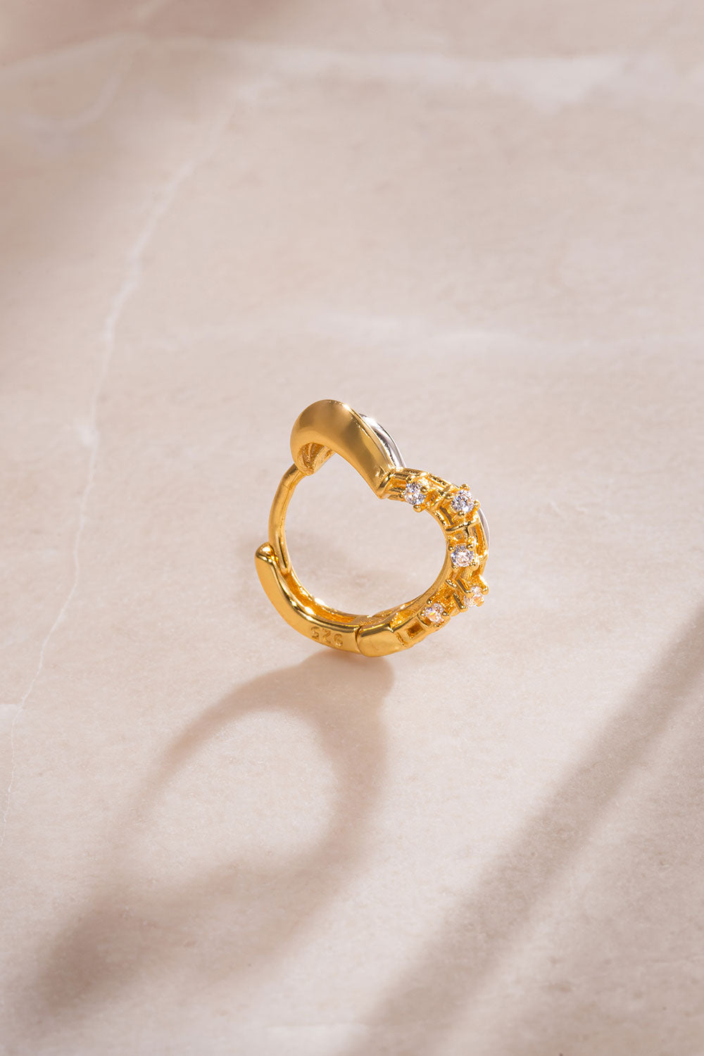 Gold 925 sterling silver heart and crystal stone detailed earrings 03