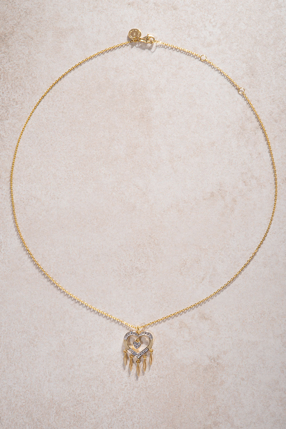 Gold 925 sterling silver heart and stone detailed necklace 18