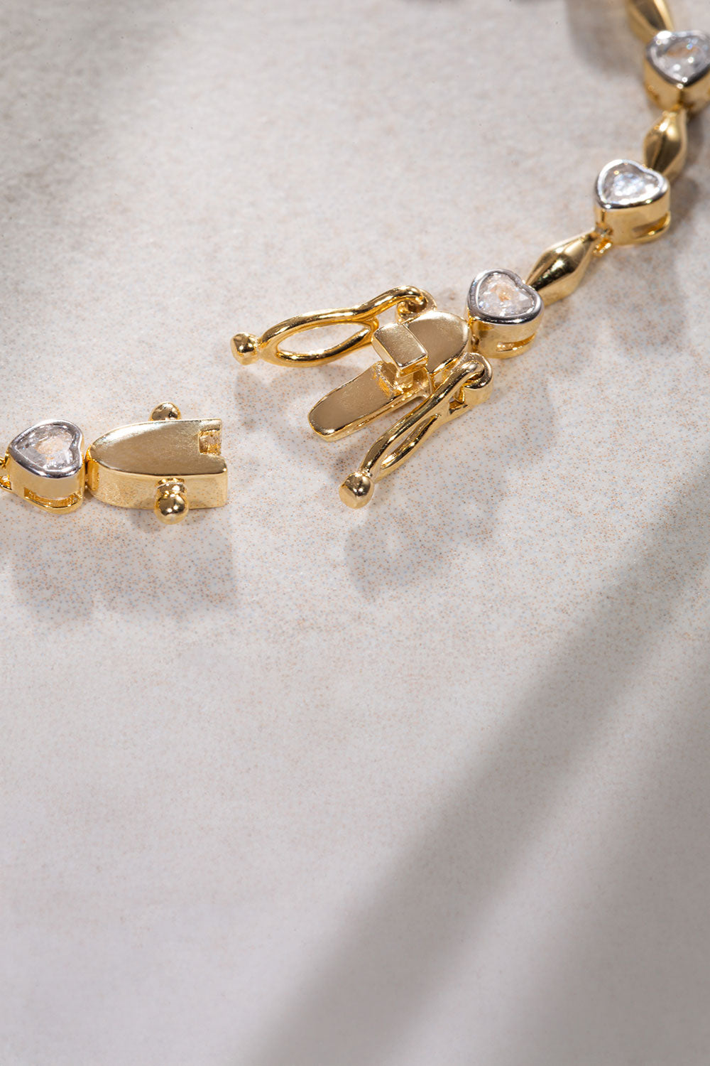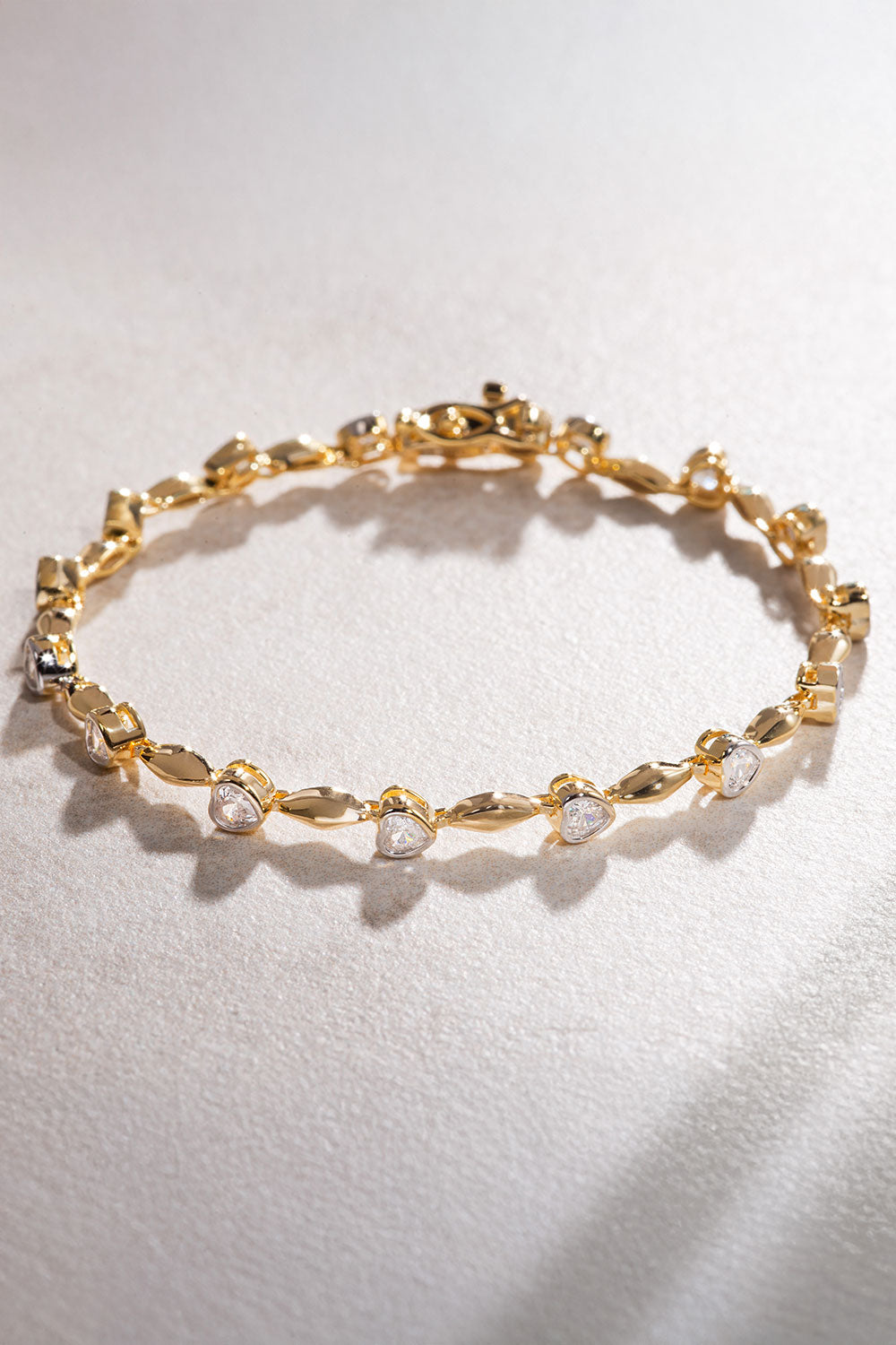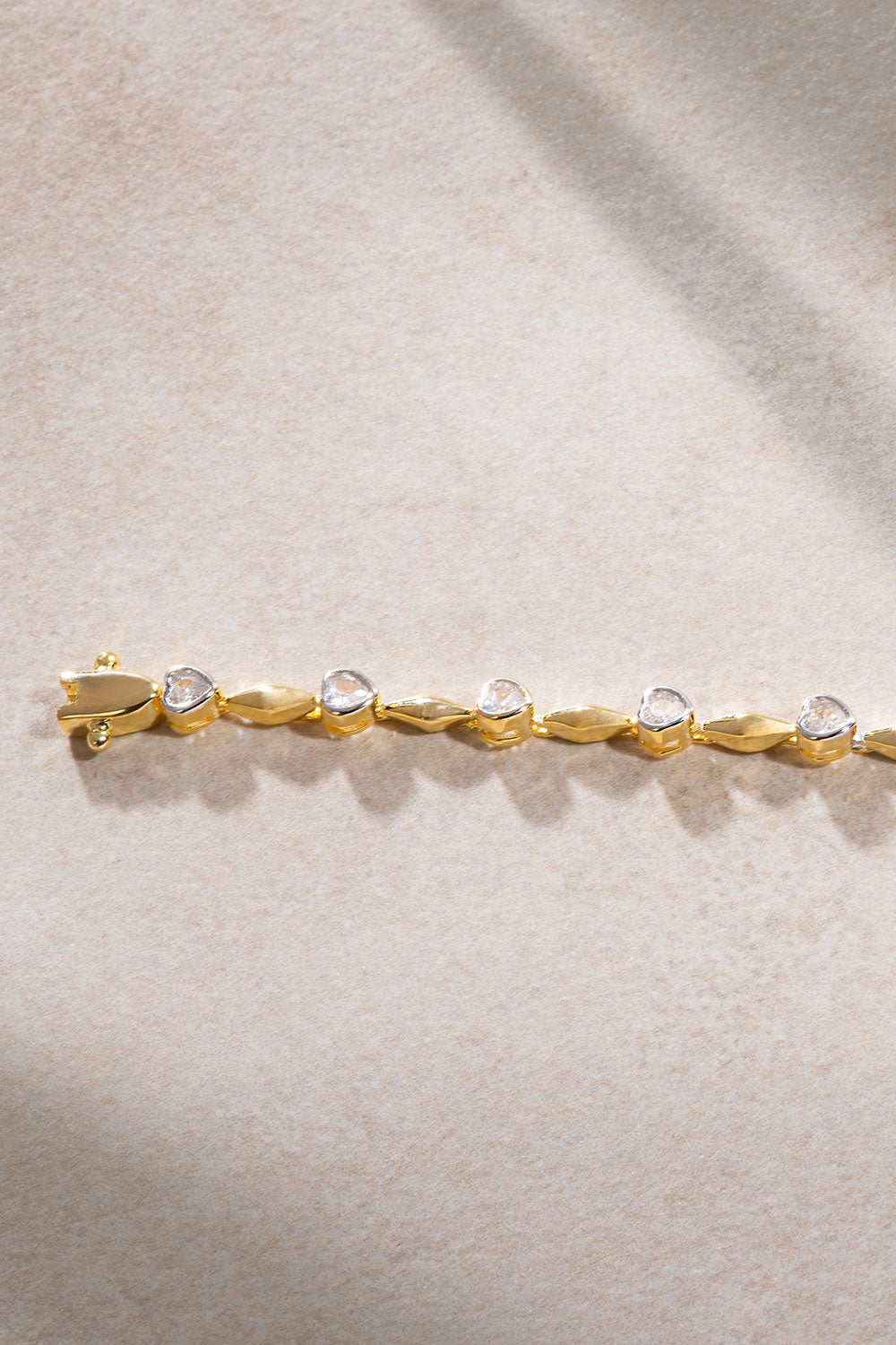 Gold 925 sterling silver heart crystal stone bracelet 20