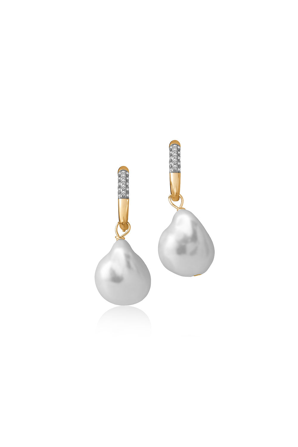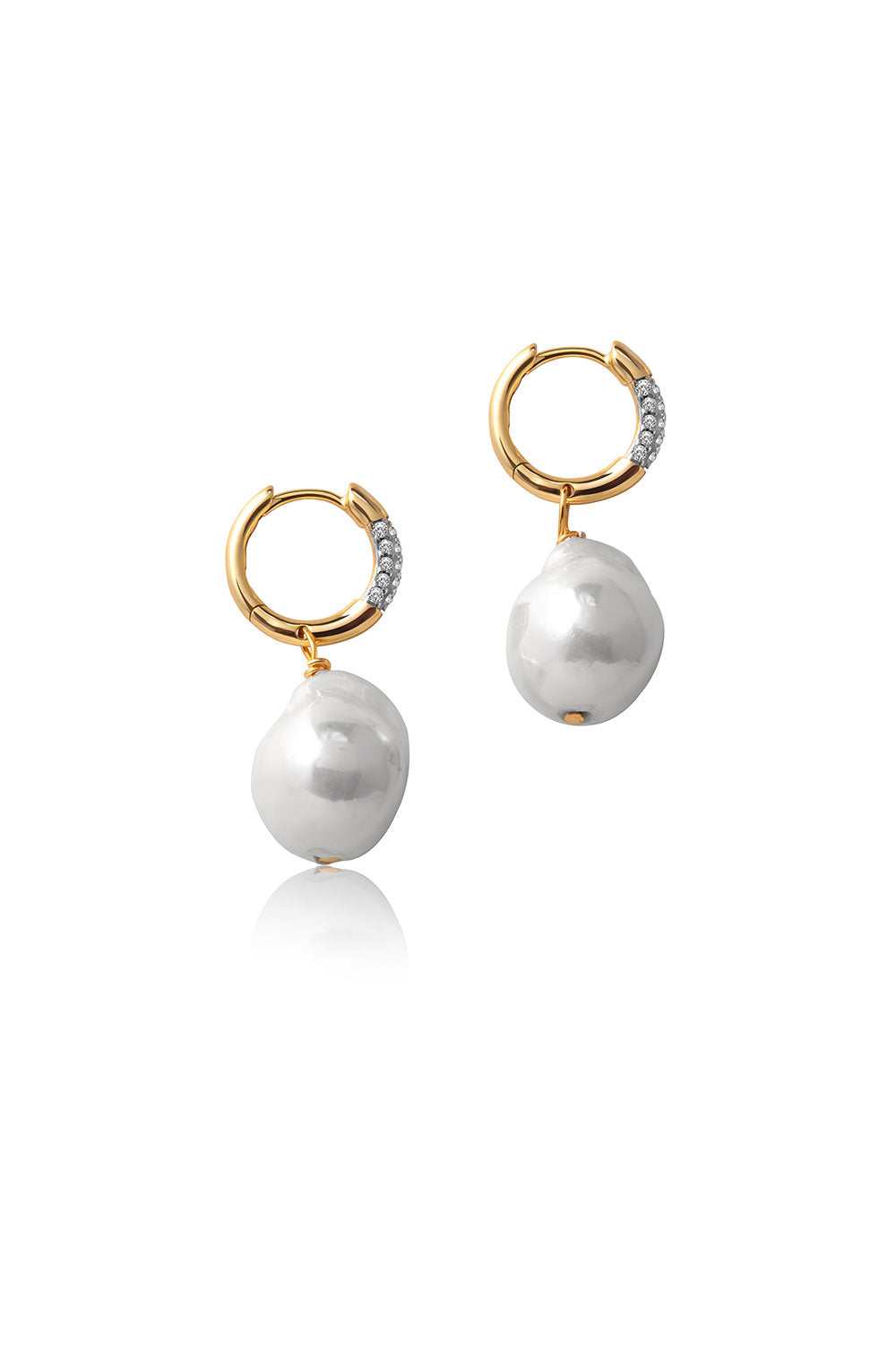 Gold 925 sterling silver hoop earring with natural pearl shape and crystal stone details 109
