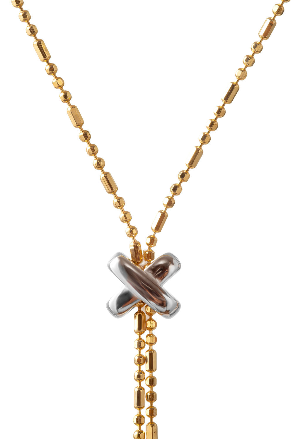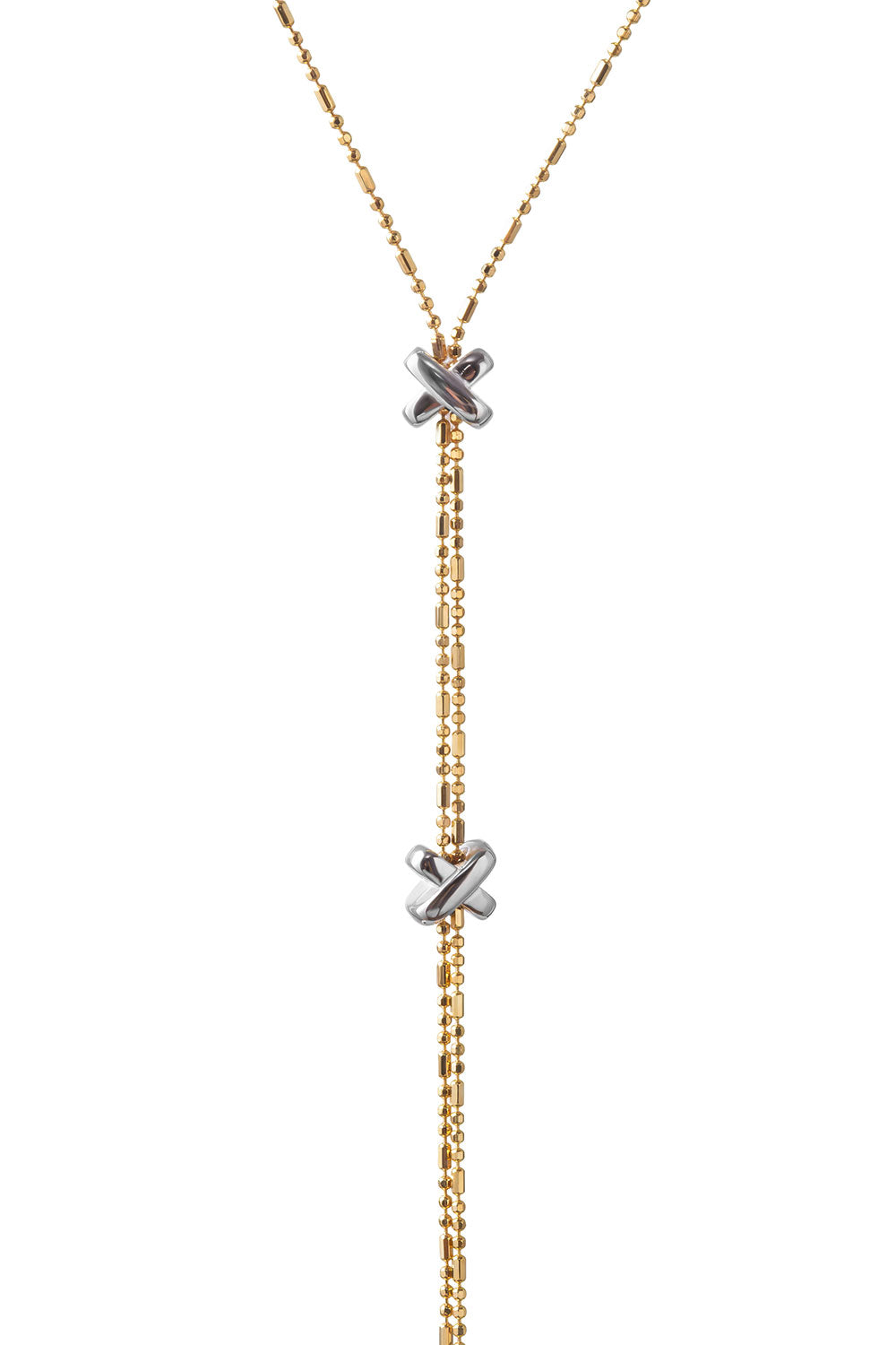 Gold 925 sterling silver necklace with a Y-shaped design and X details 107