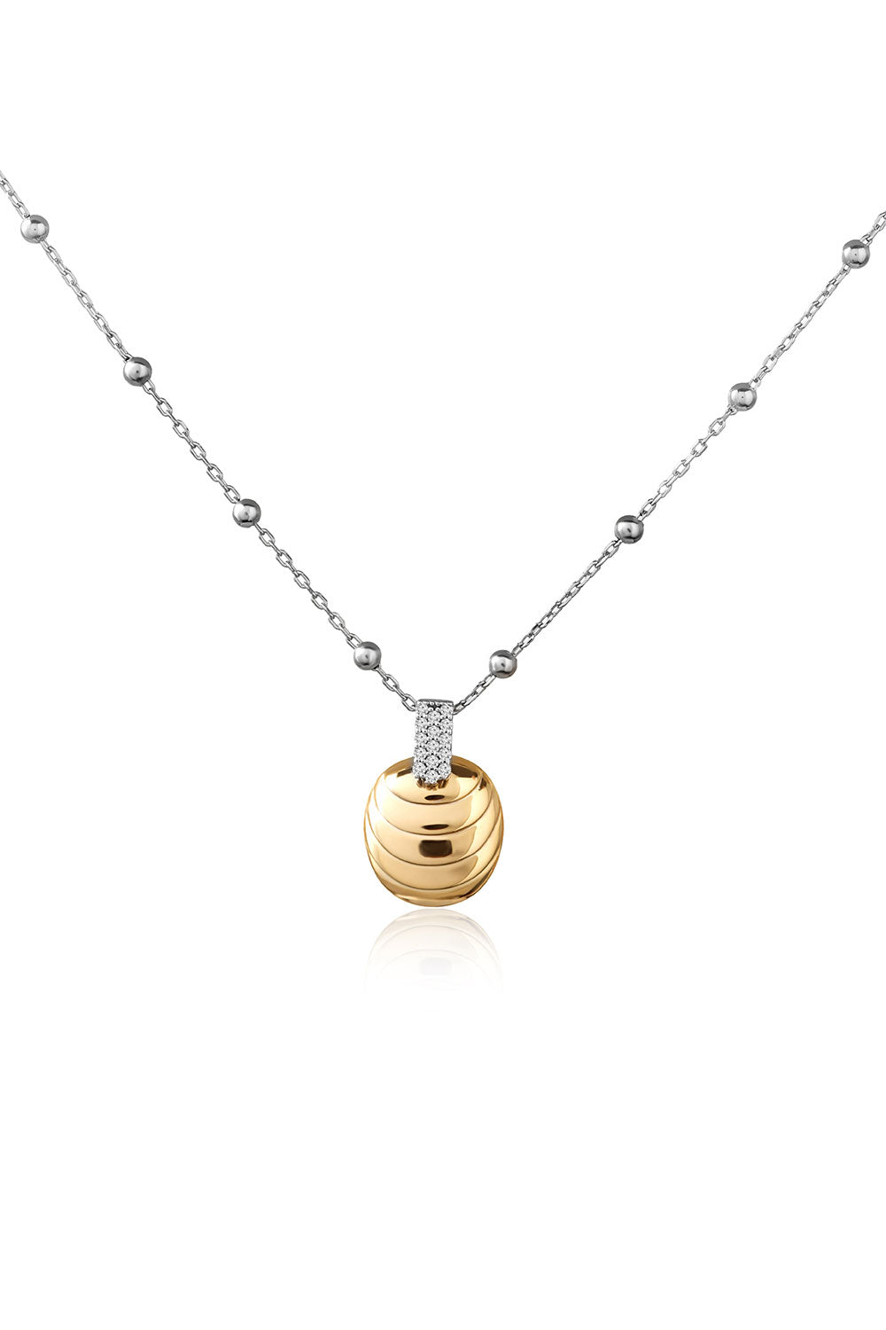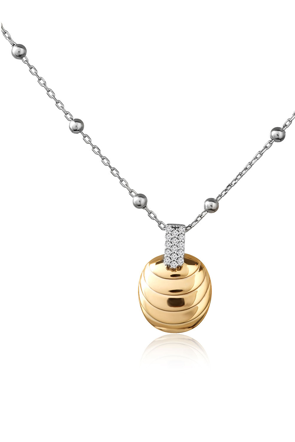 Gold 925 sterling silver necklace with layered shell form and crystal stone details 124