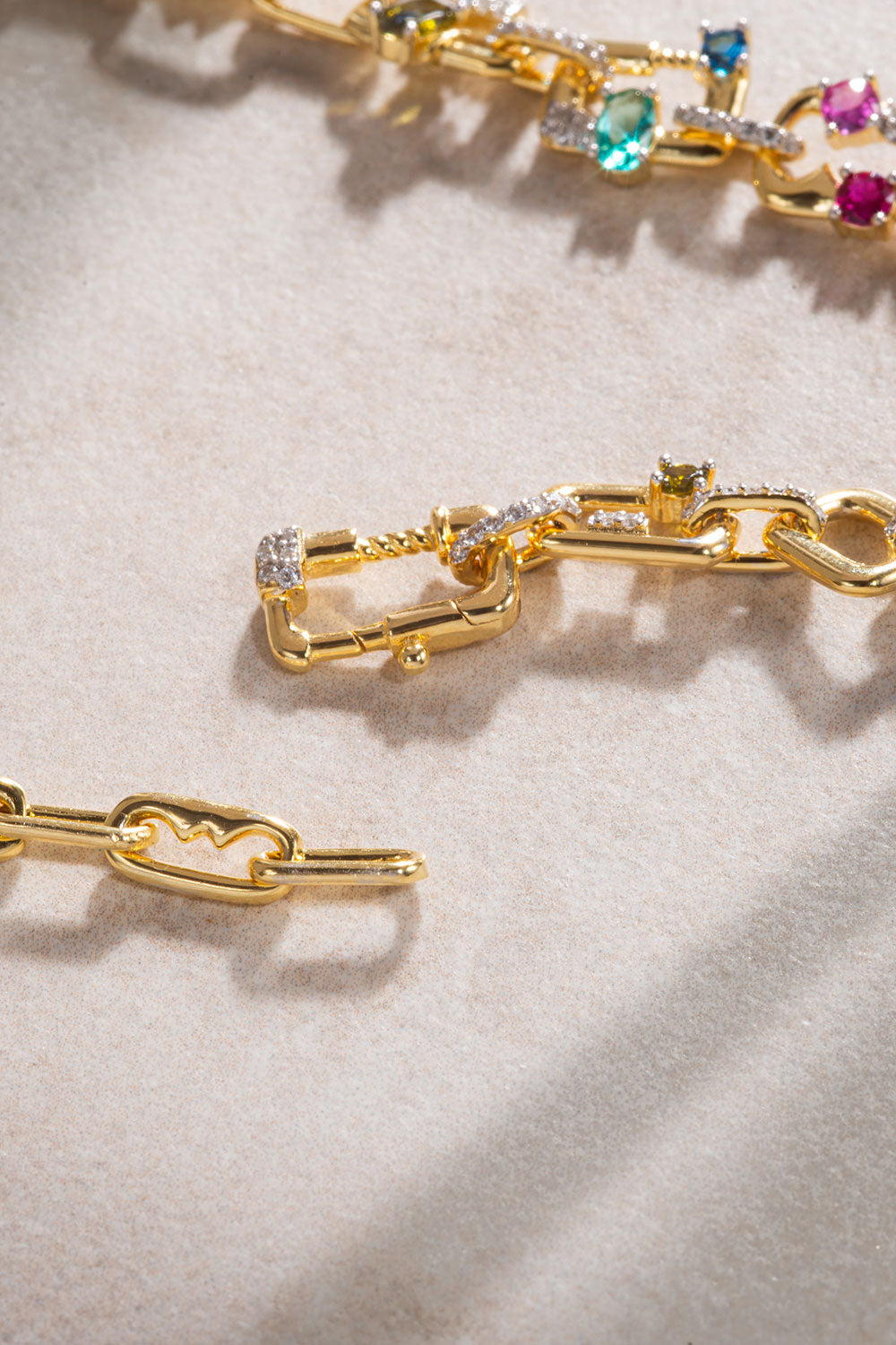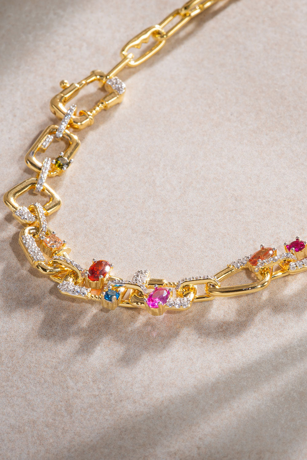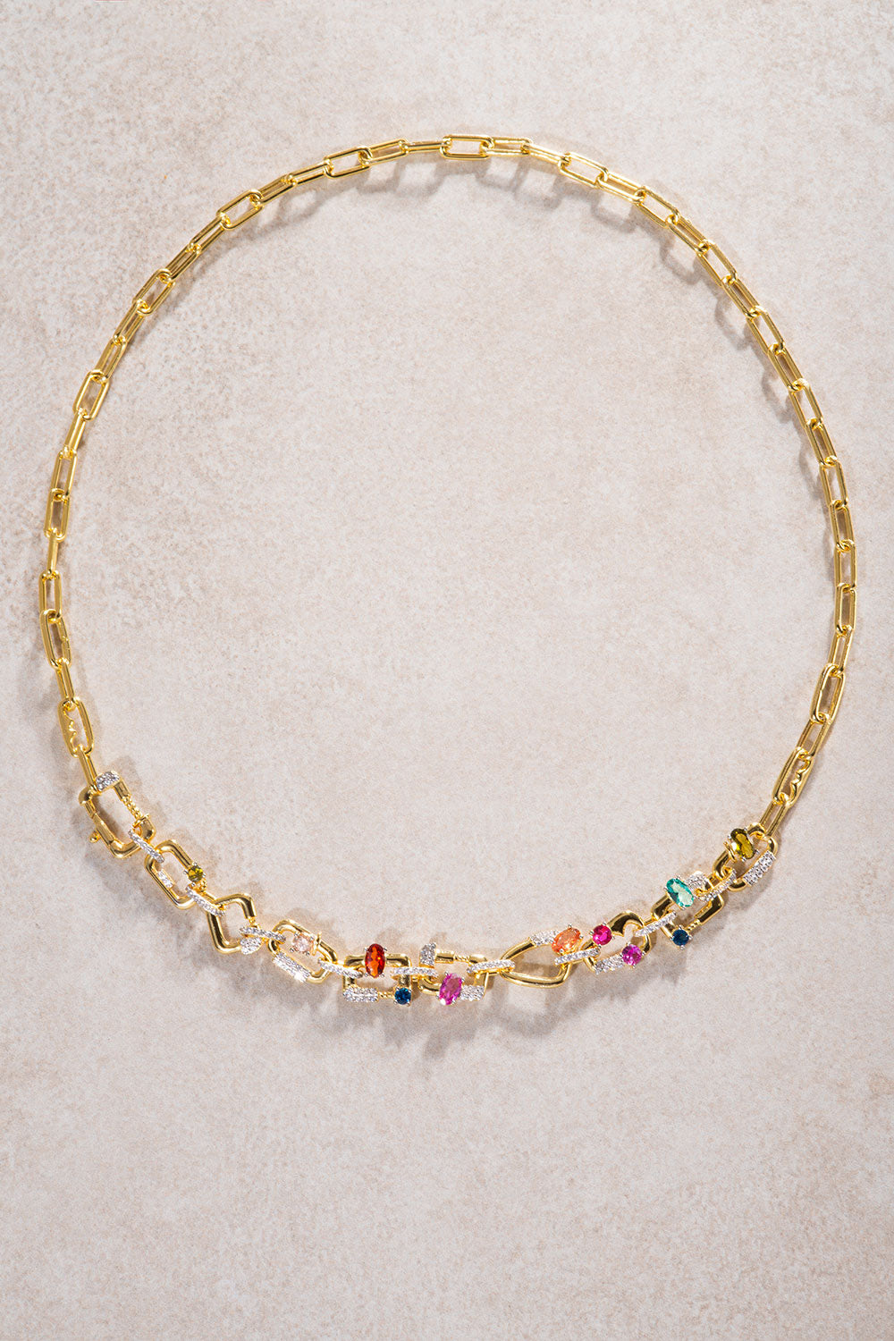 Gold 925 sterling silver necklace with ring and colored stone details 08