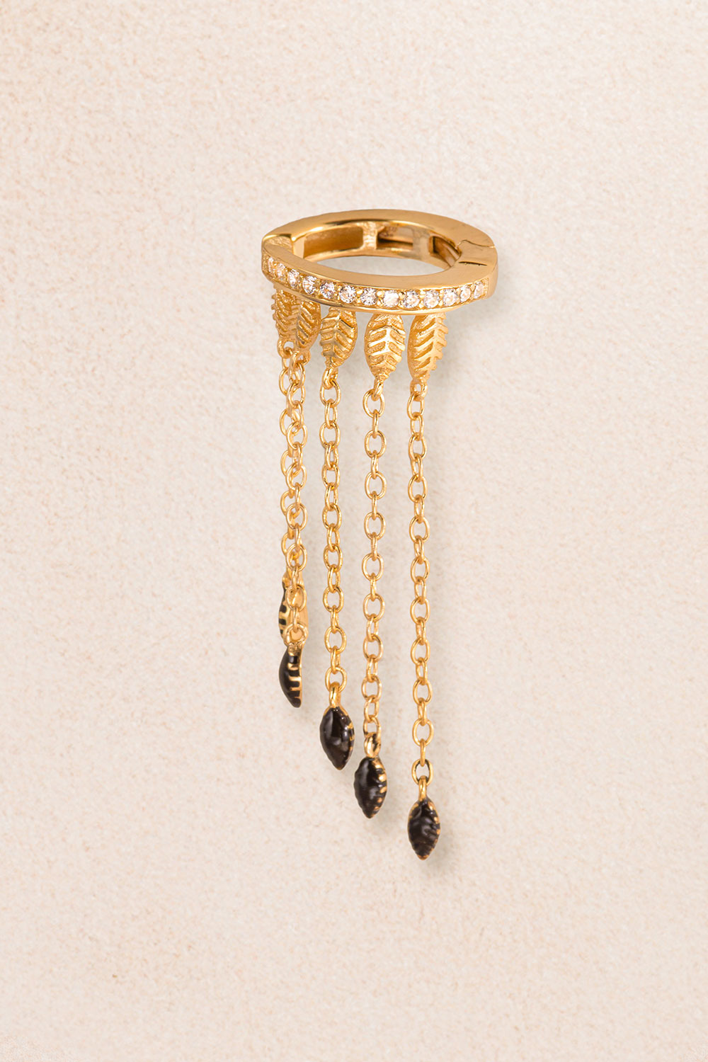 Gold Black stone chain and crystal stone detailed 925 sterling silver cartilage earrings 63