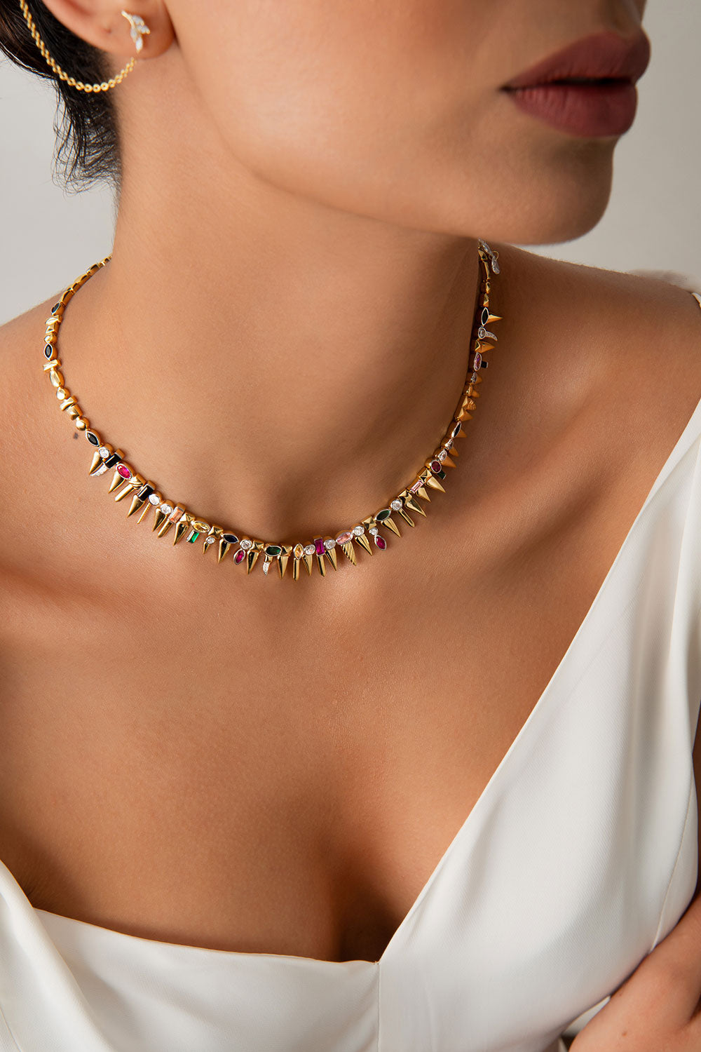 Gold Colorful crystal stone pointed 925 sterling silver necklace 16
