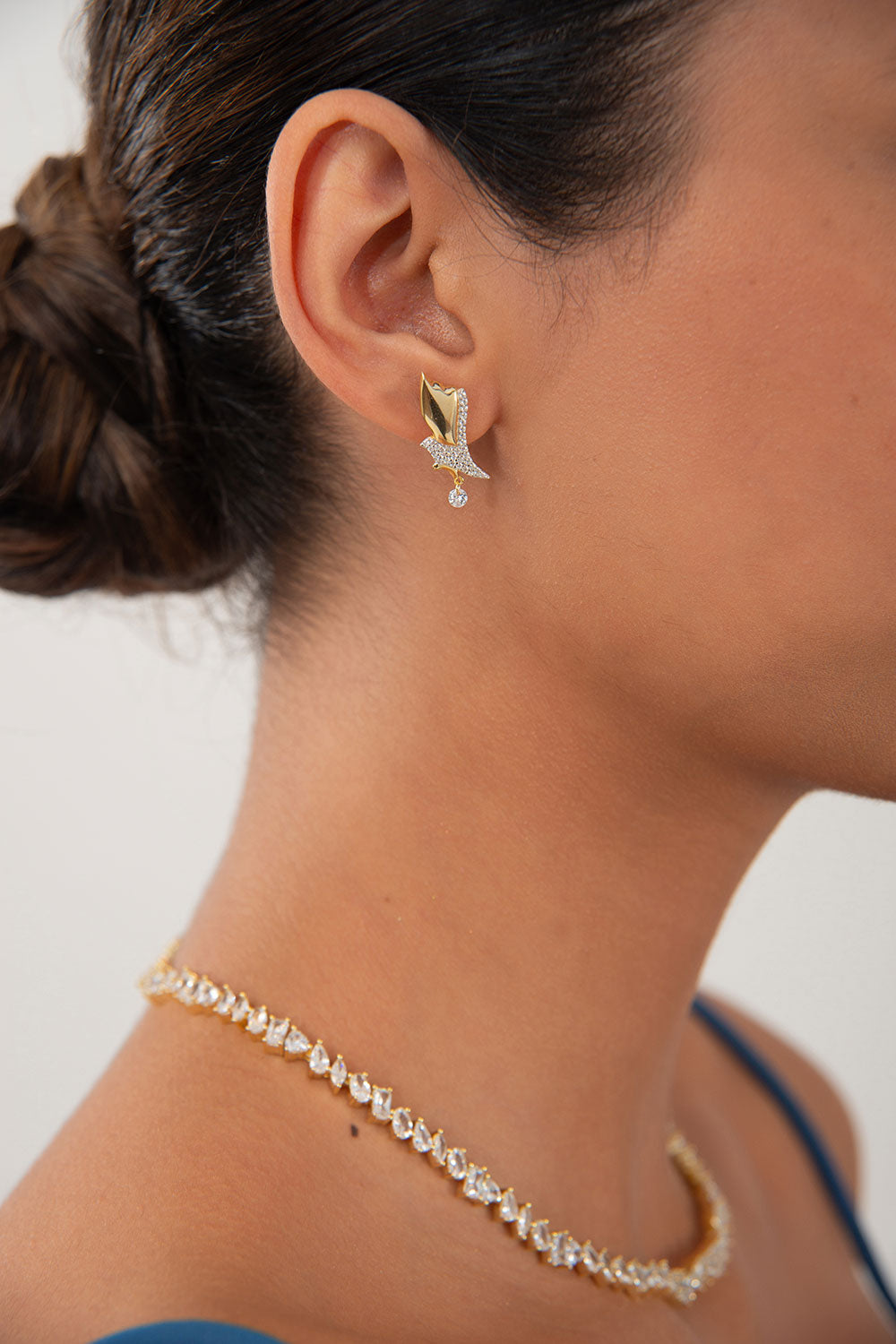 Gold Crystal stone detailed dangling 925 sterling silver earrings 141