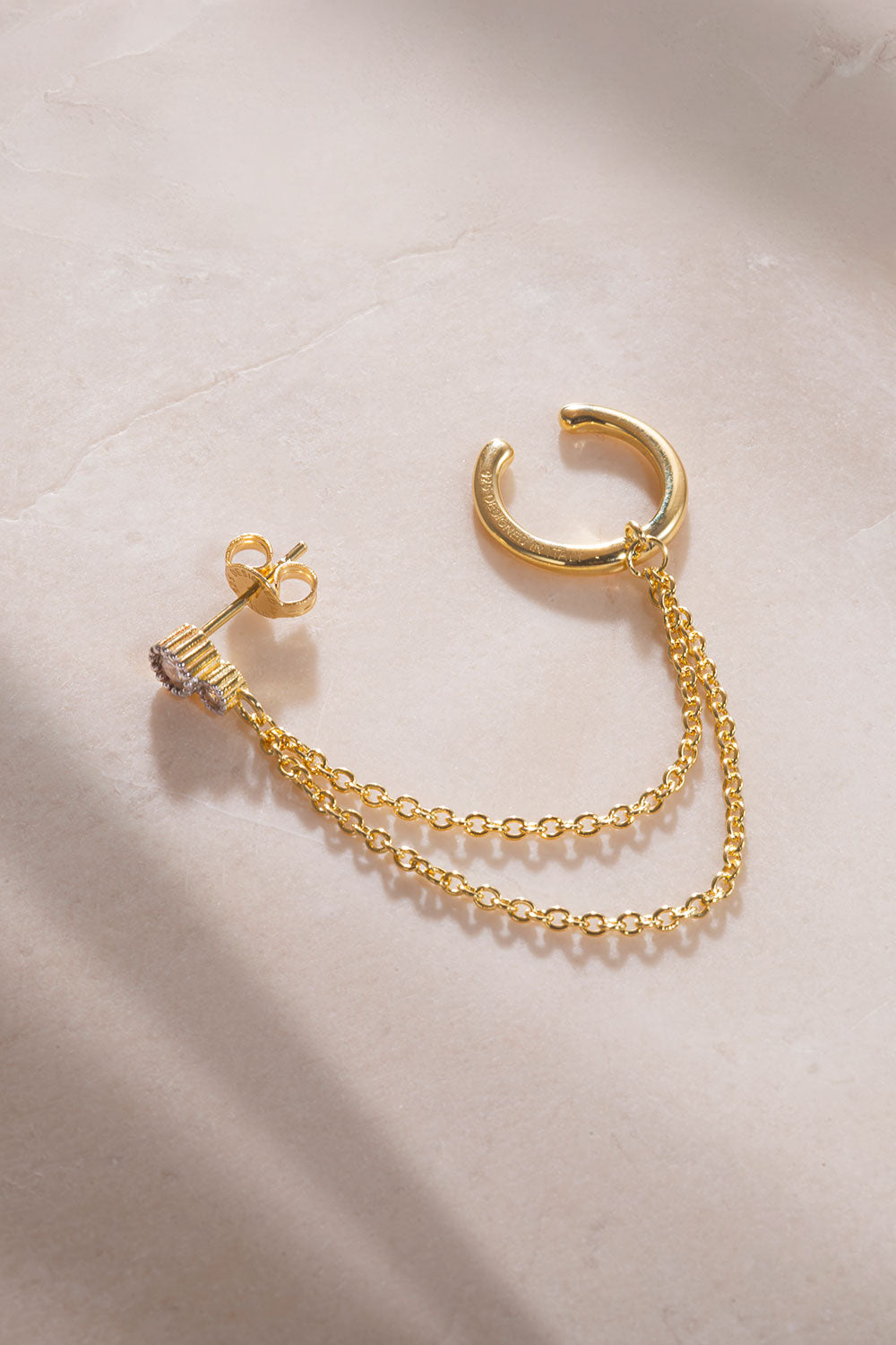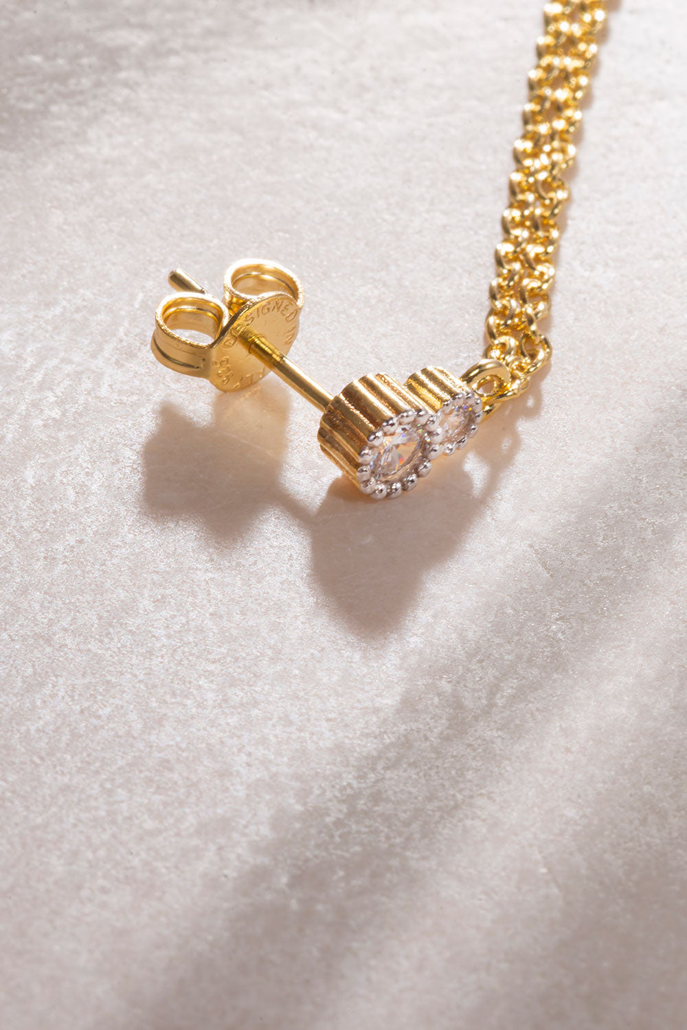 Gold Crystal stone detailed double chain 925 sterling silver earrings 43