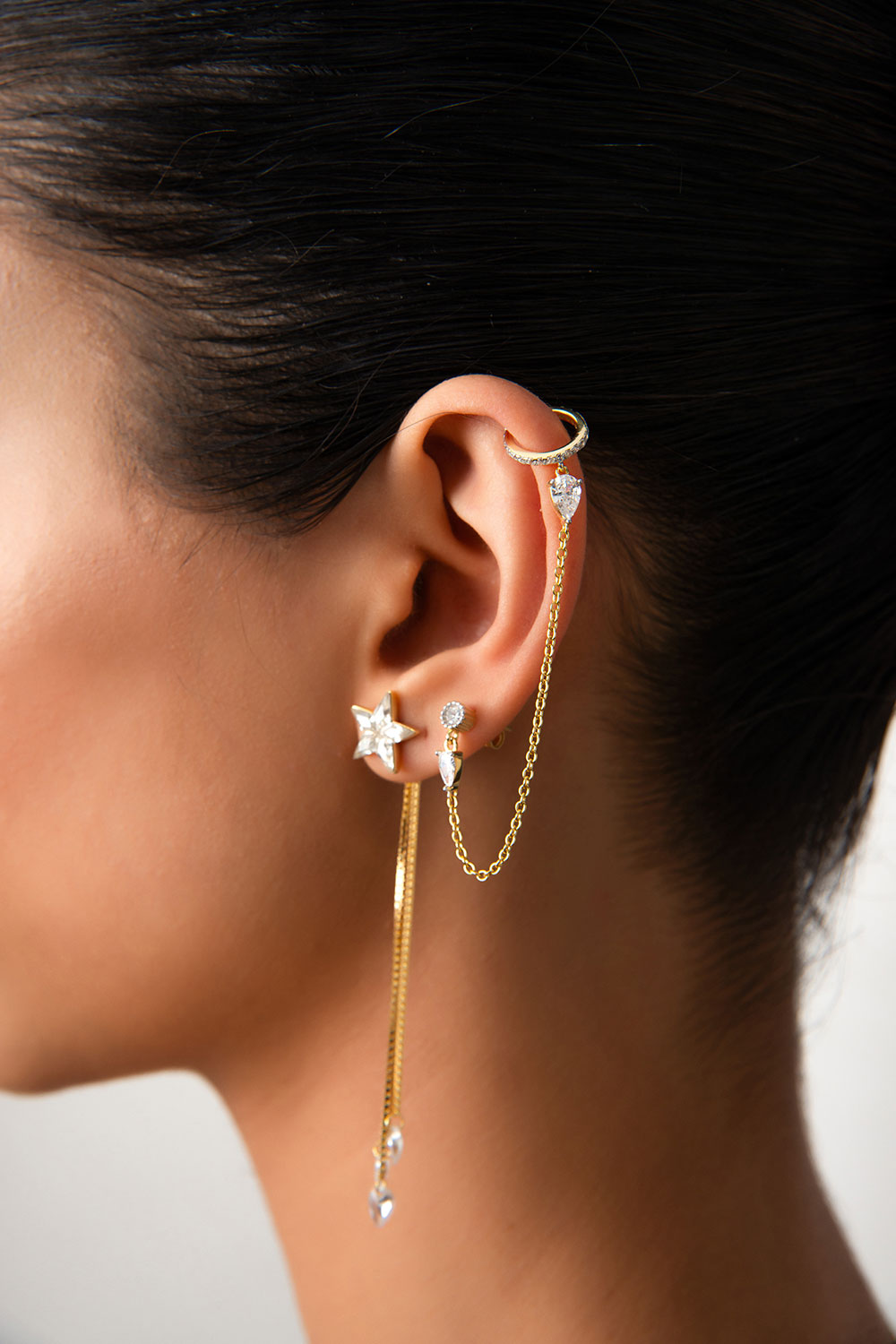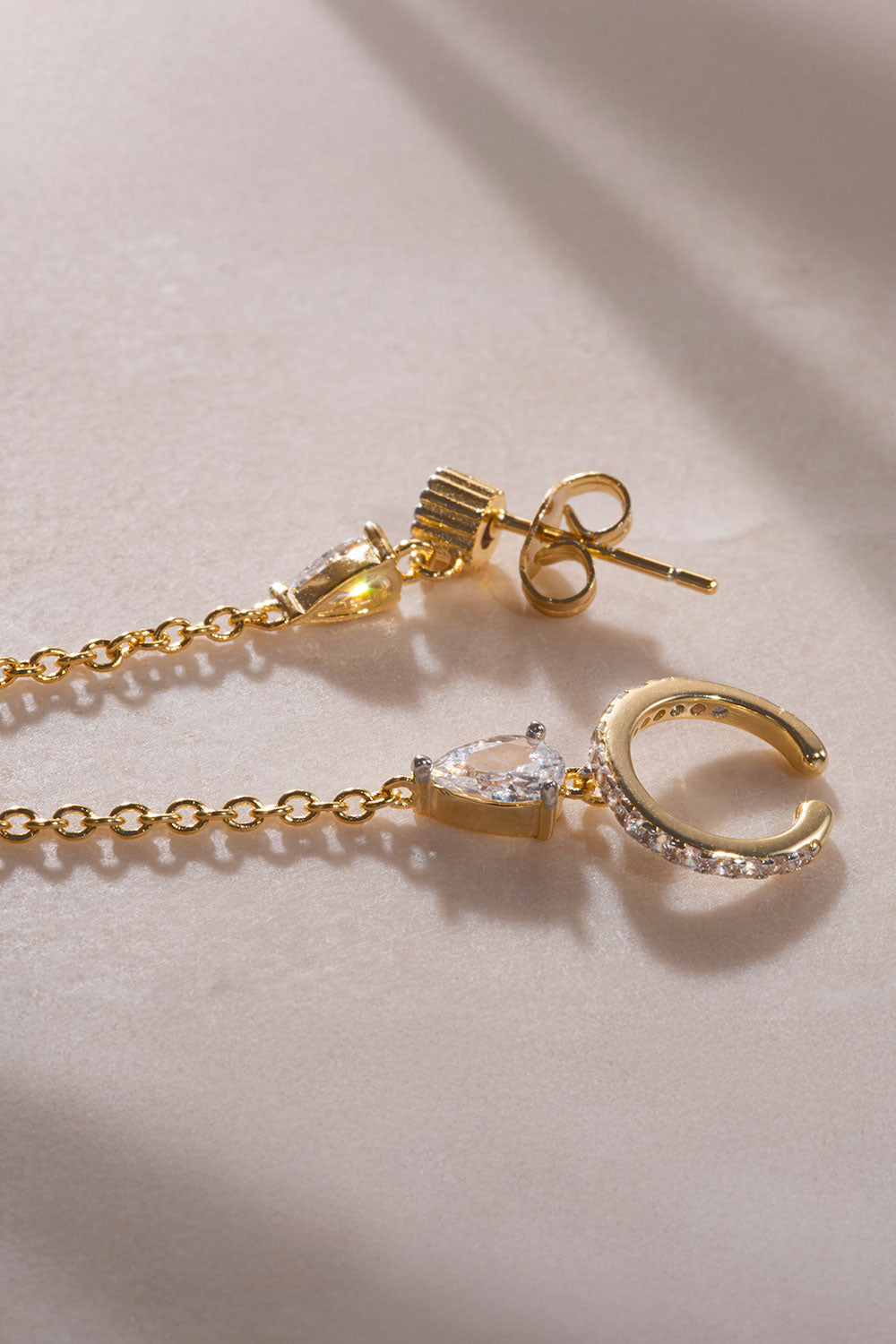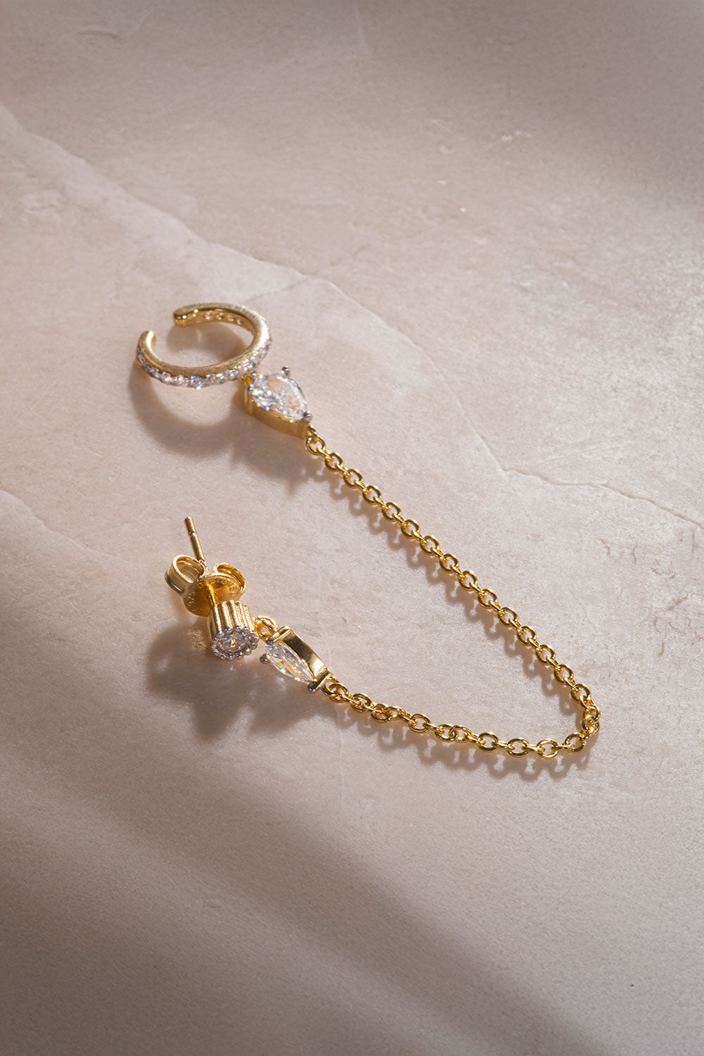Gold Crystal stone detailed single chain 925 sterling silver earrings 44