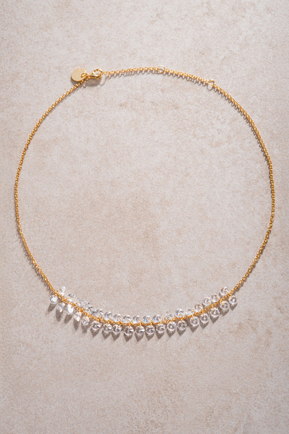 Gold Double sparkle and crystal stone detailed 925 sterling silver necklace 56