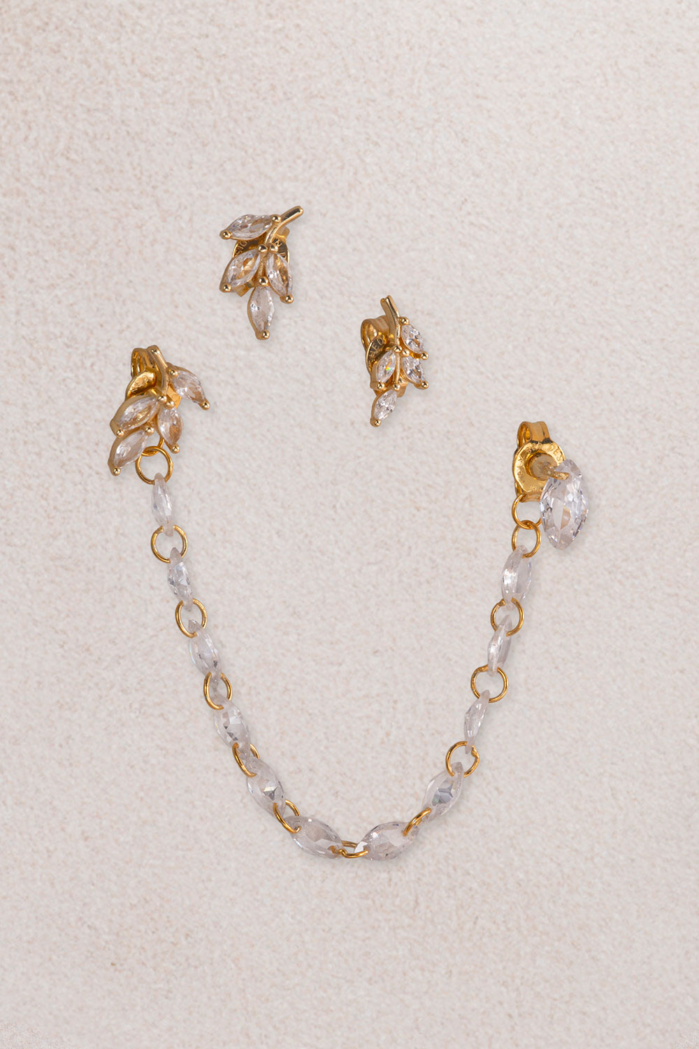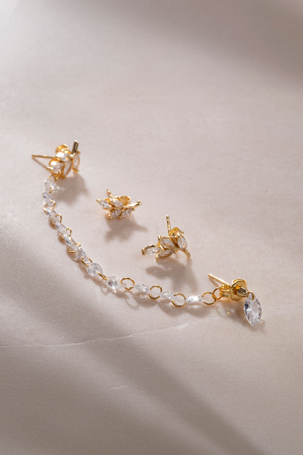 Gold Leaf and crystal stone detailed 925 sterling silver earrings 33