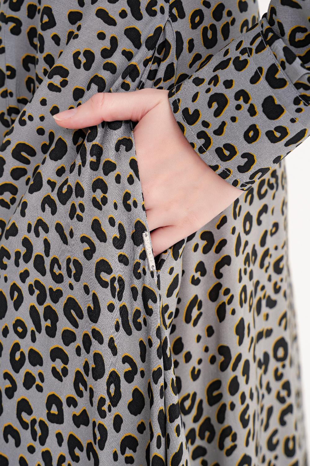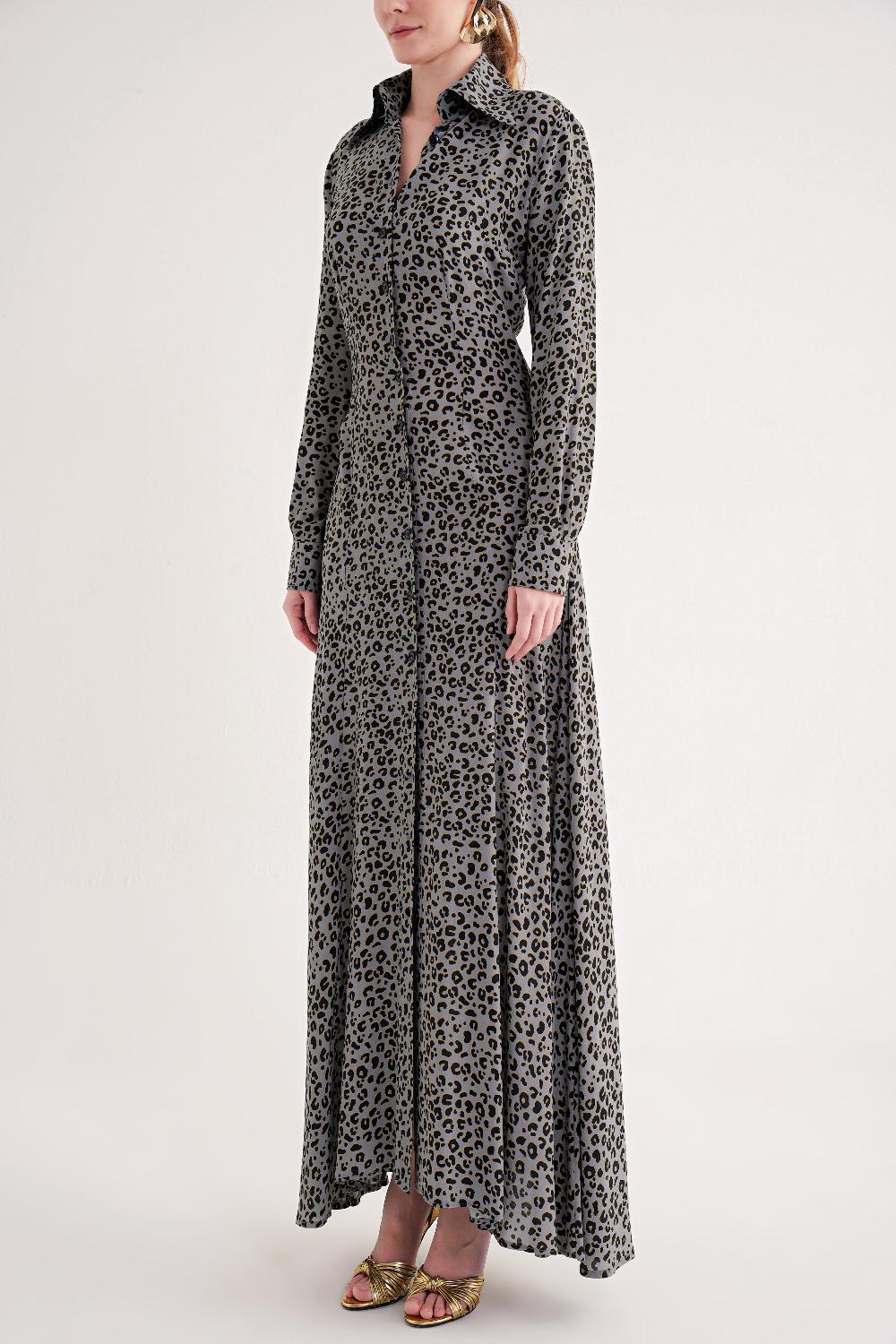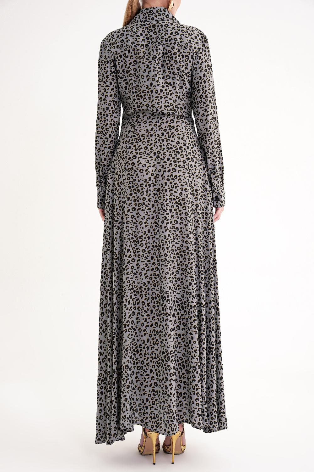 Gray Long shirt dress fitted at the waist 94674