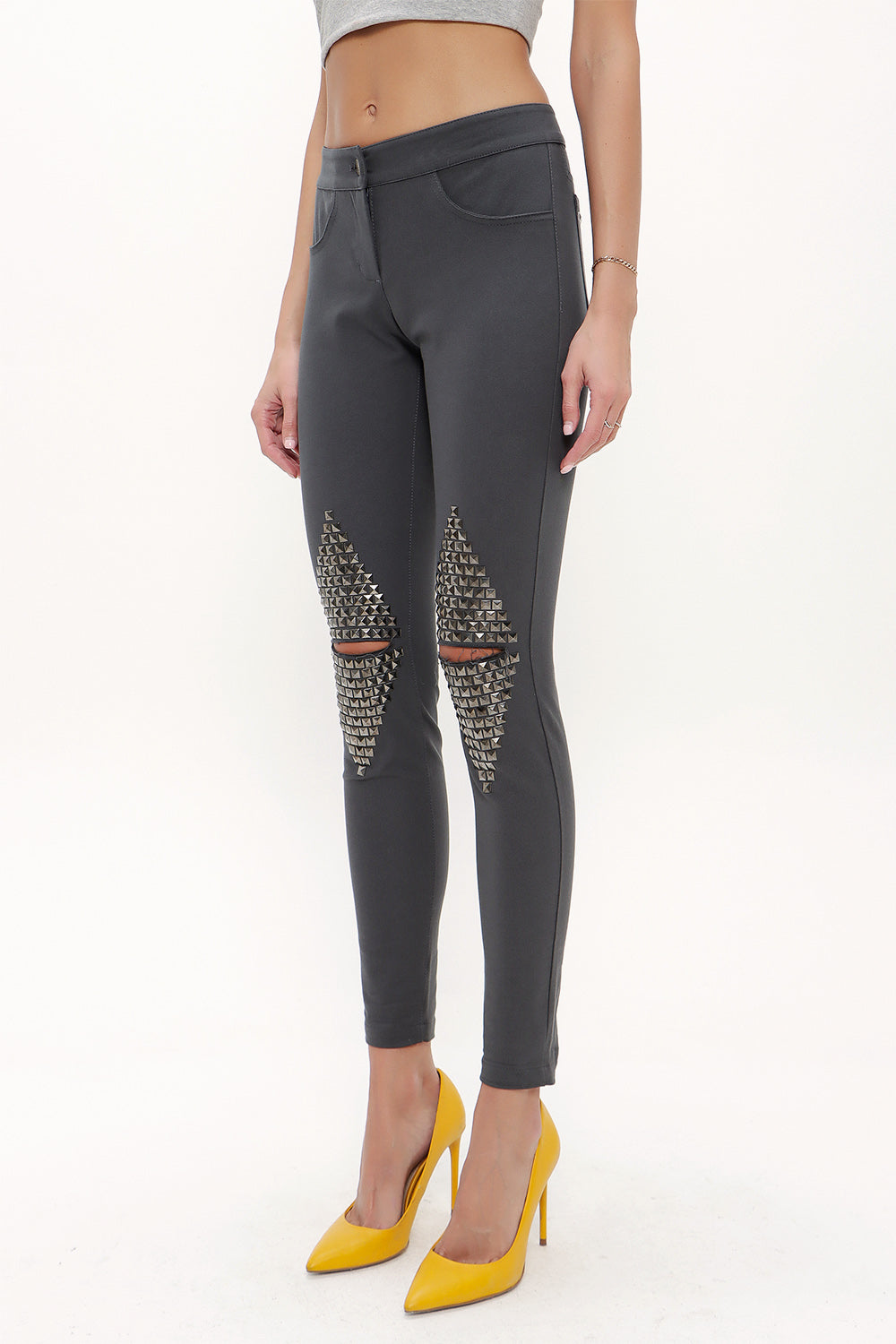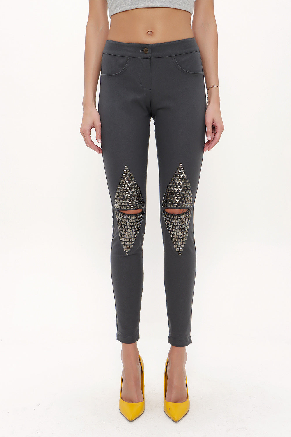 Gray Metal detail pocket pants 41242