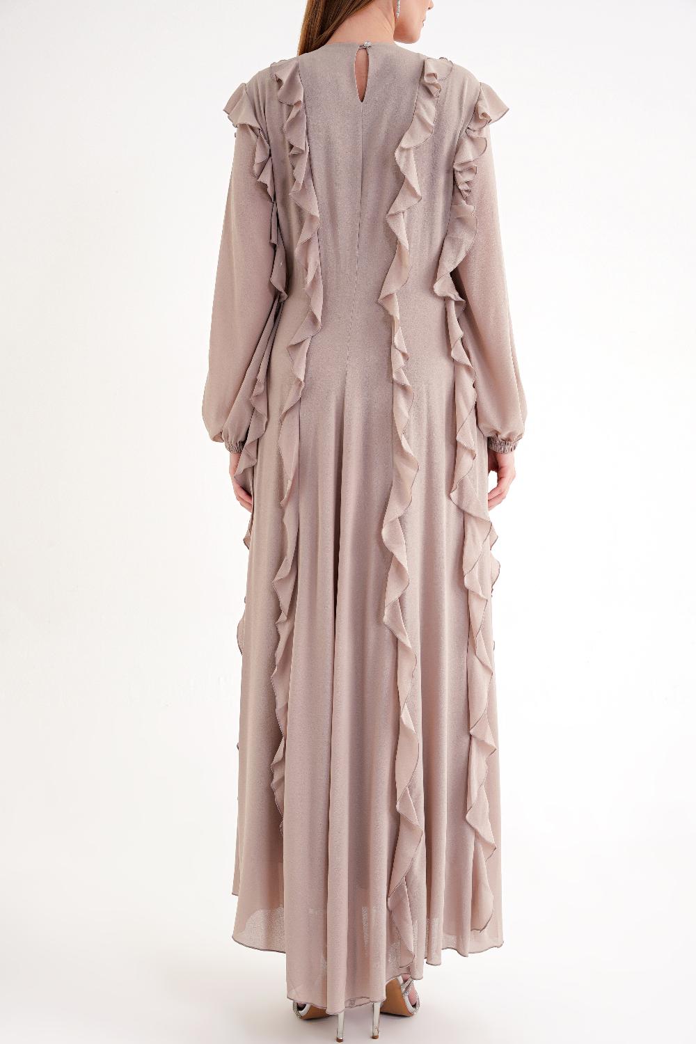 Gray pleated long dress 94665