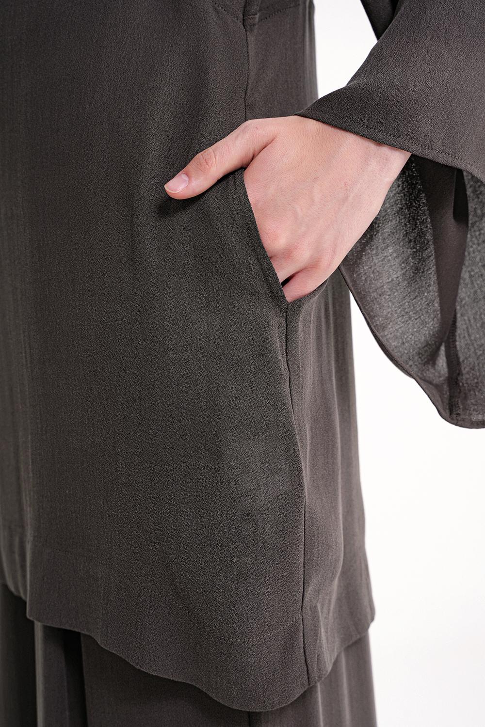 Gray Loose-fit blouse and trousers two-piece suit 12361