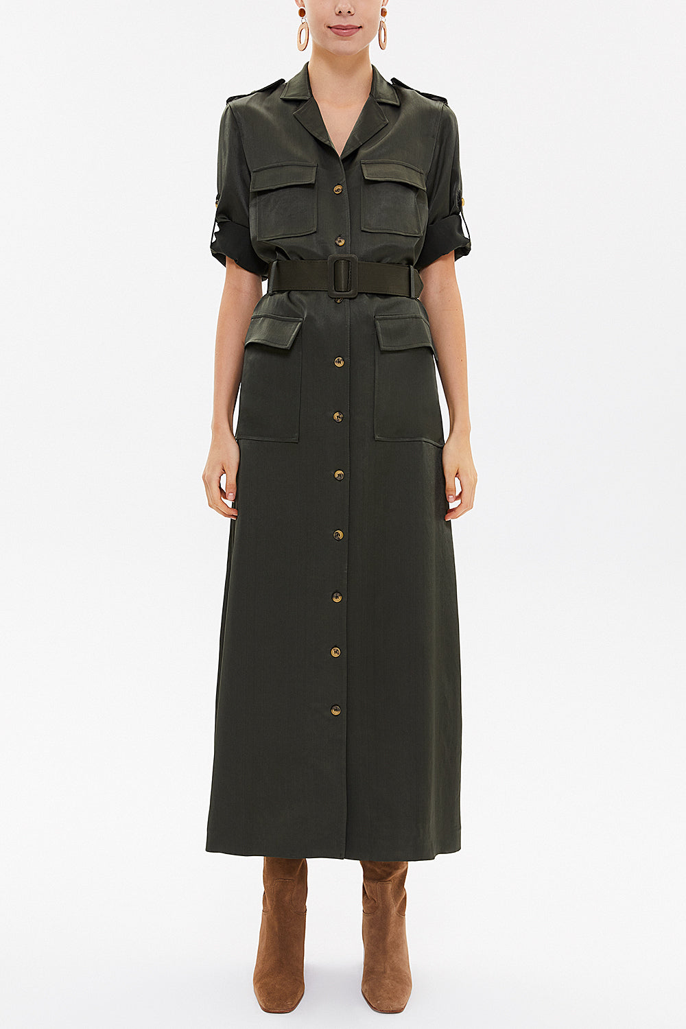 Green Butterfly collar, pocket midi dress 93289