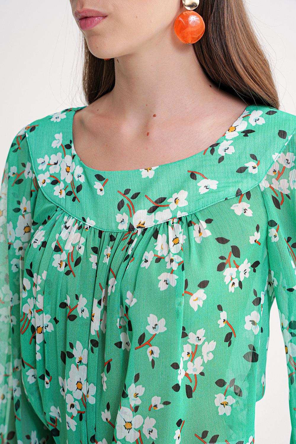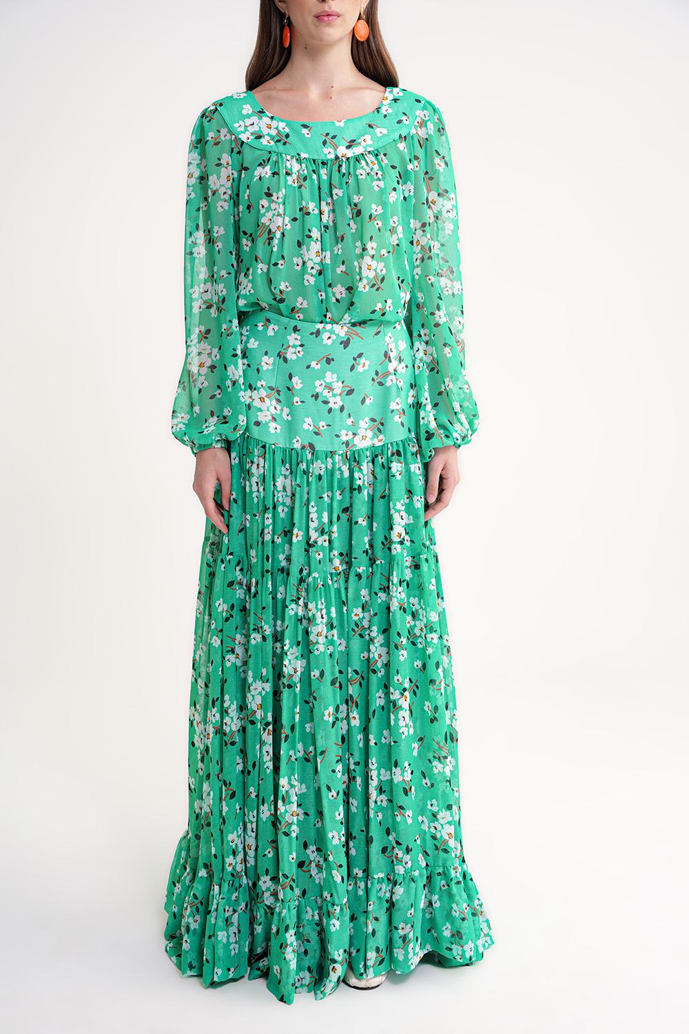 Green Loose-fit blouse and long gathered skirt two-piece suit 12345