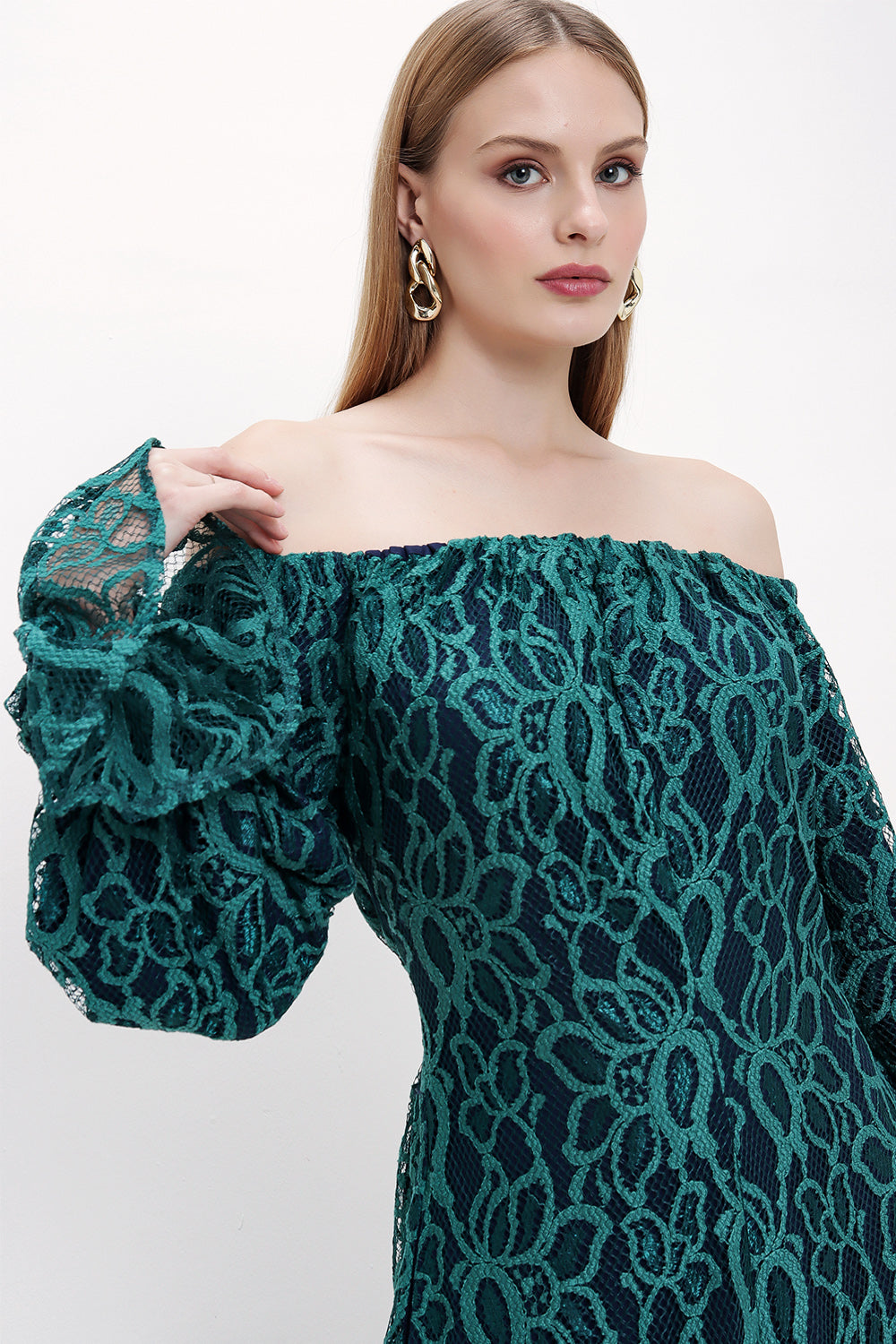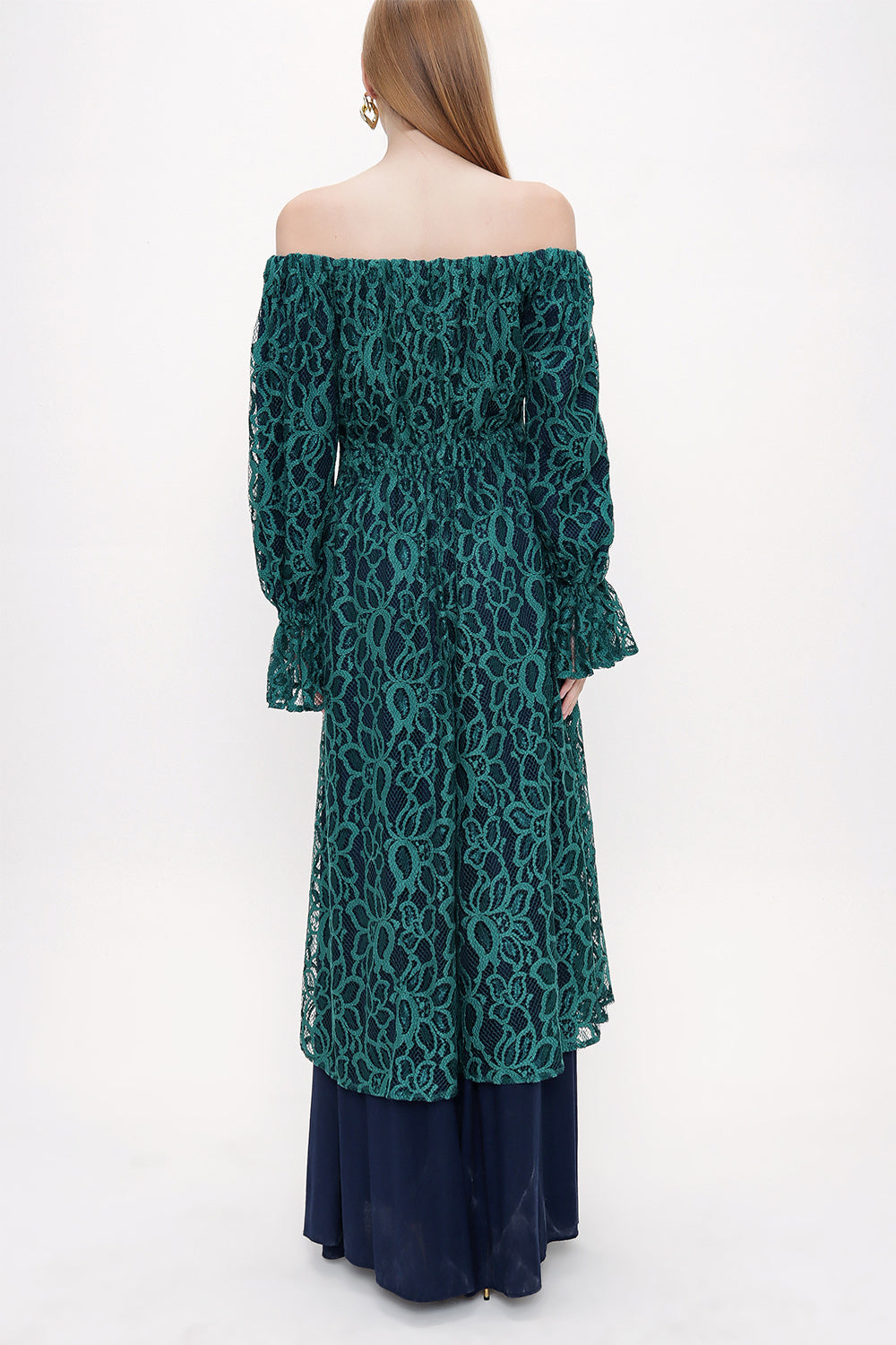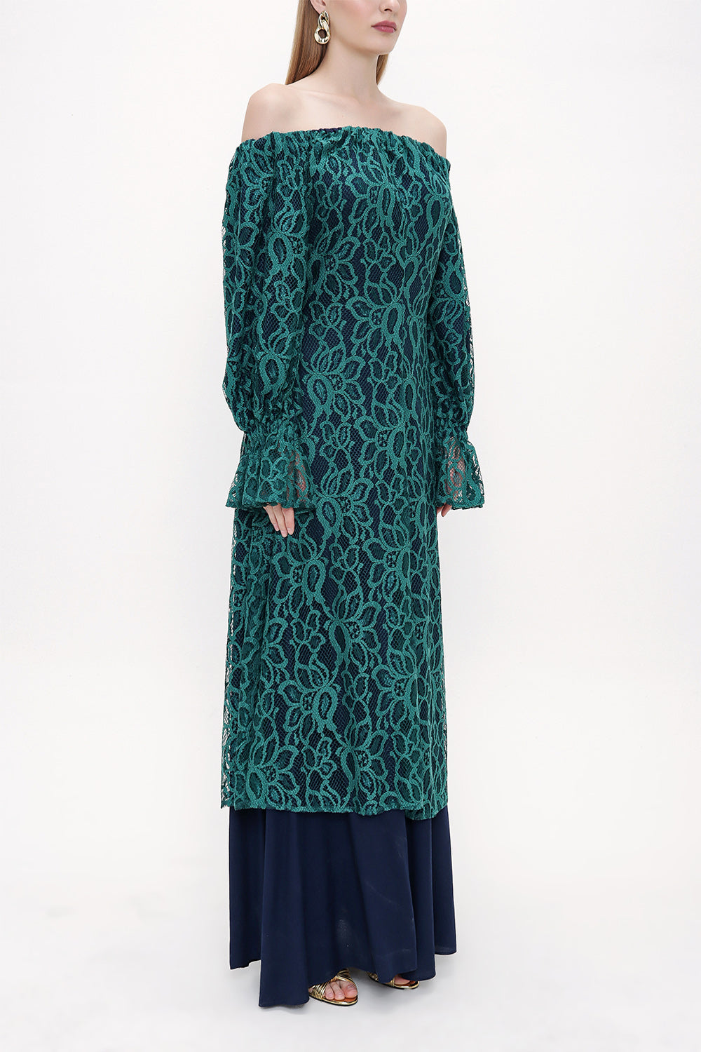 Green Off-shoulder lace dress 93803