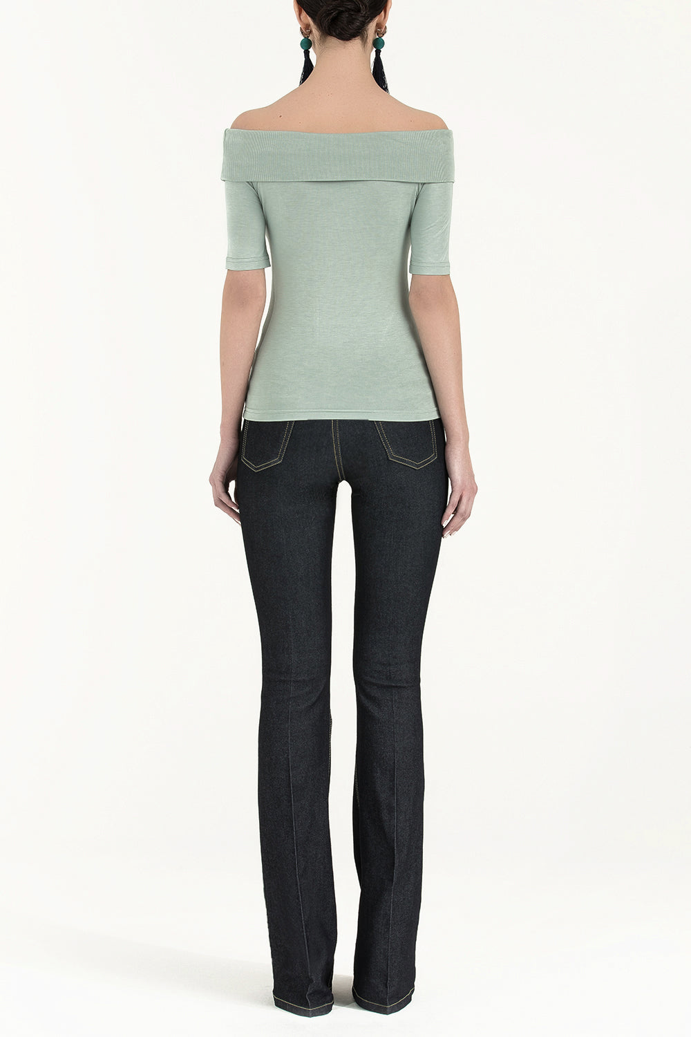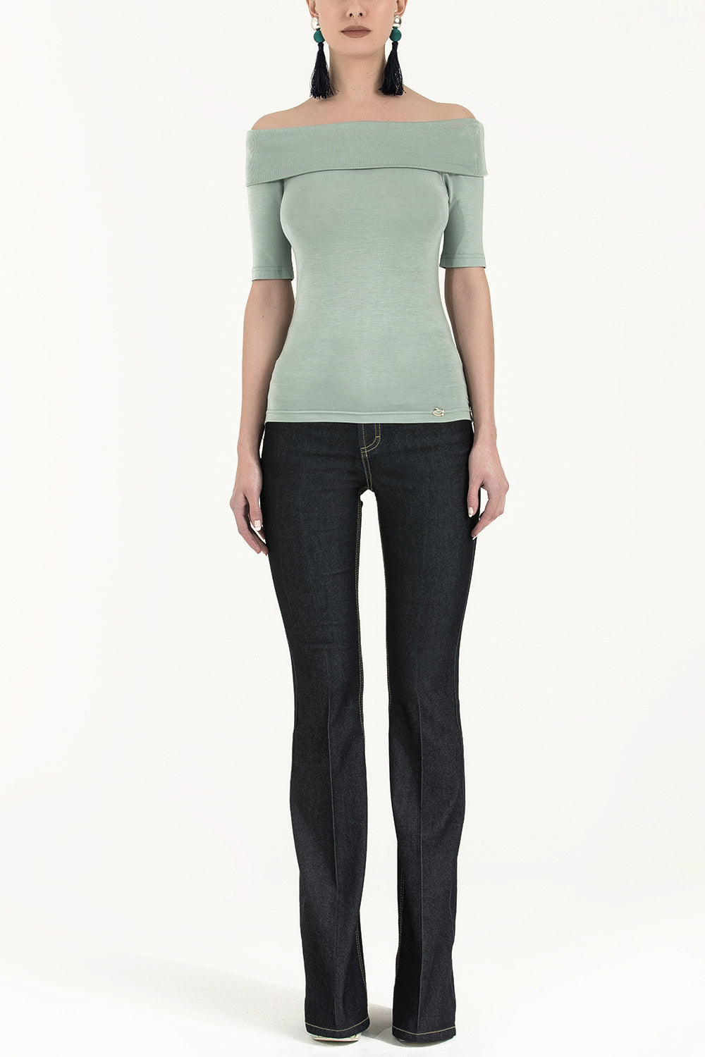Green Off shoulder woven blouse 19477