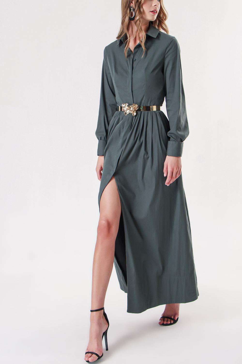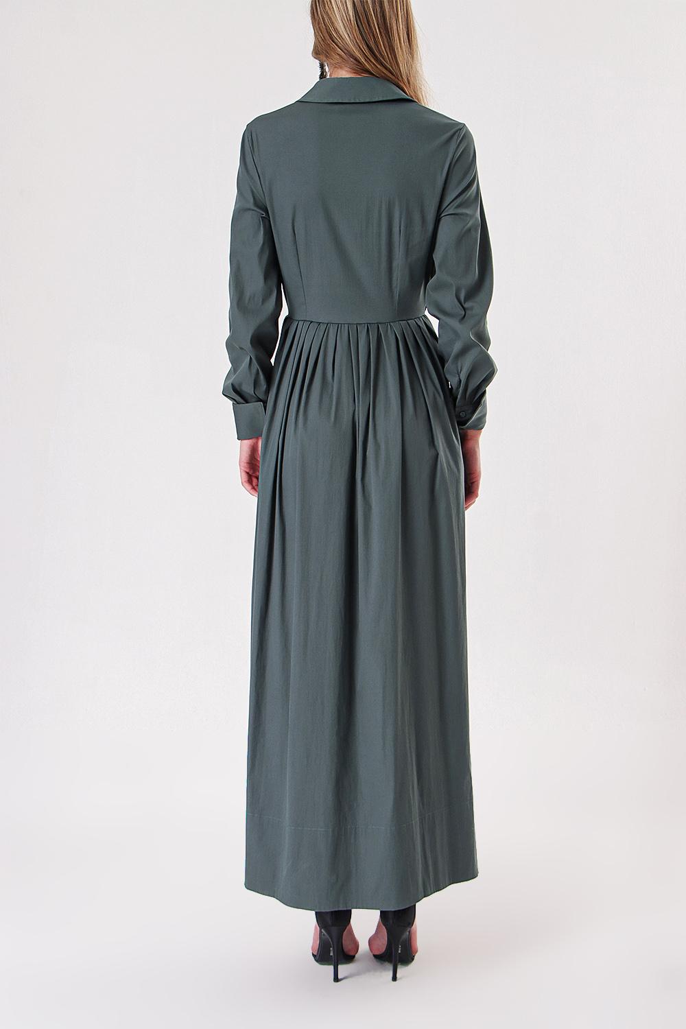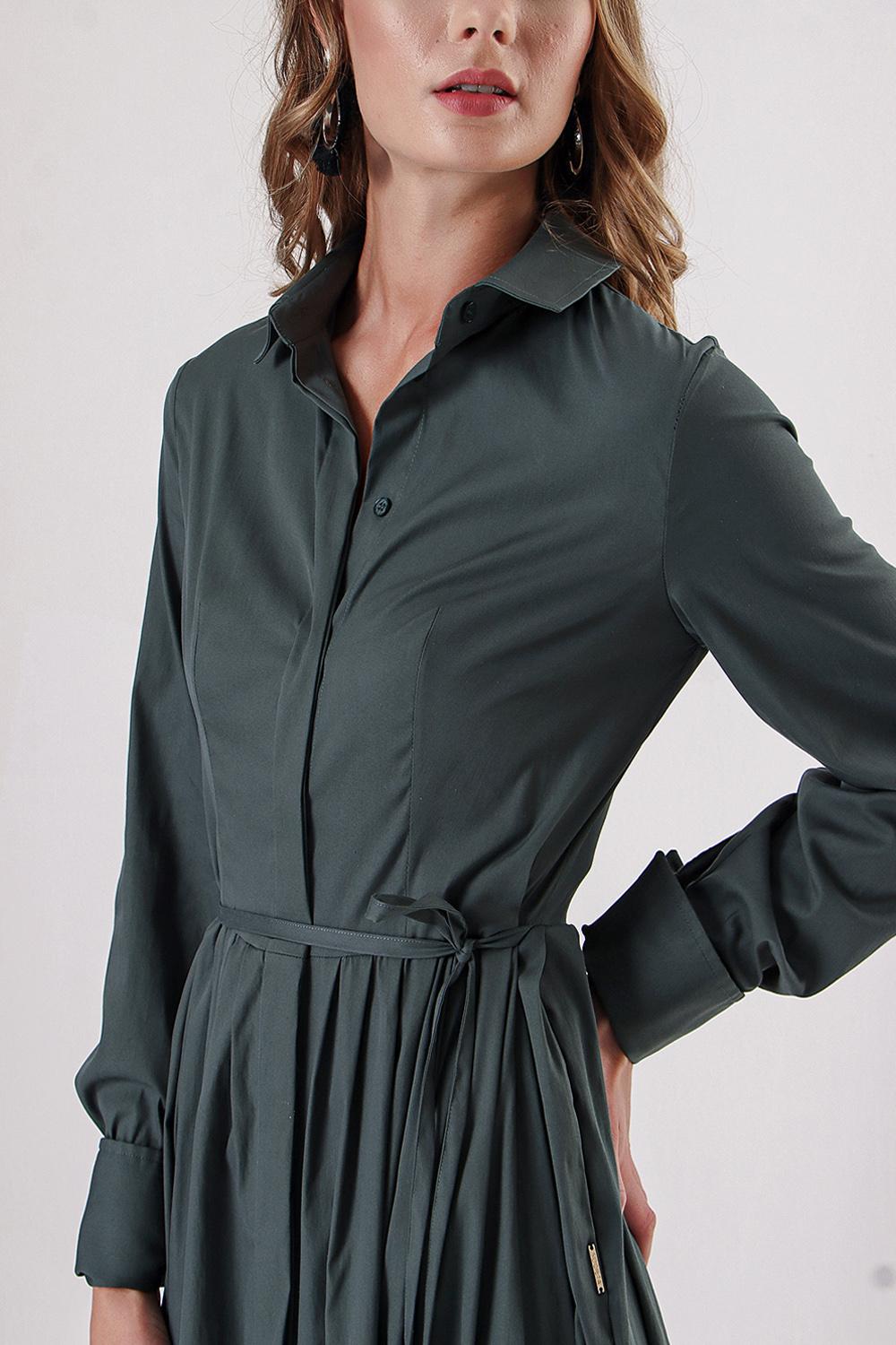 Green Pleated long shirt dress 94149
