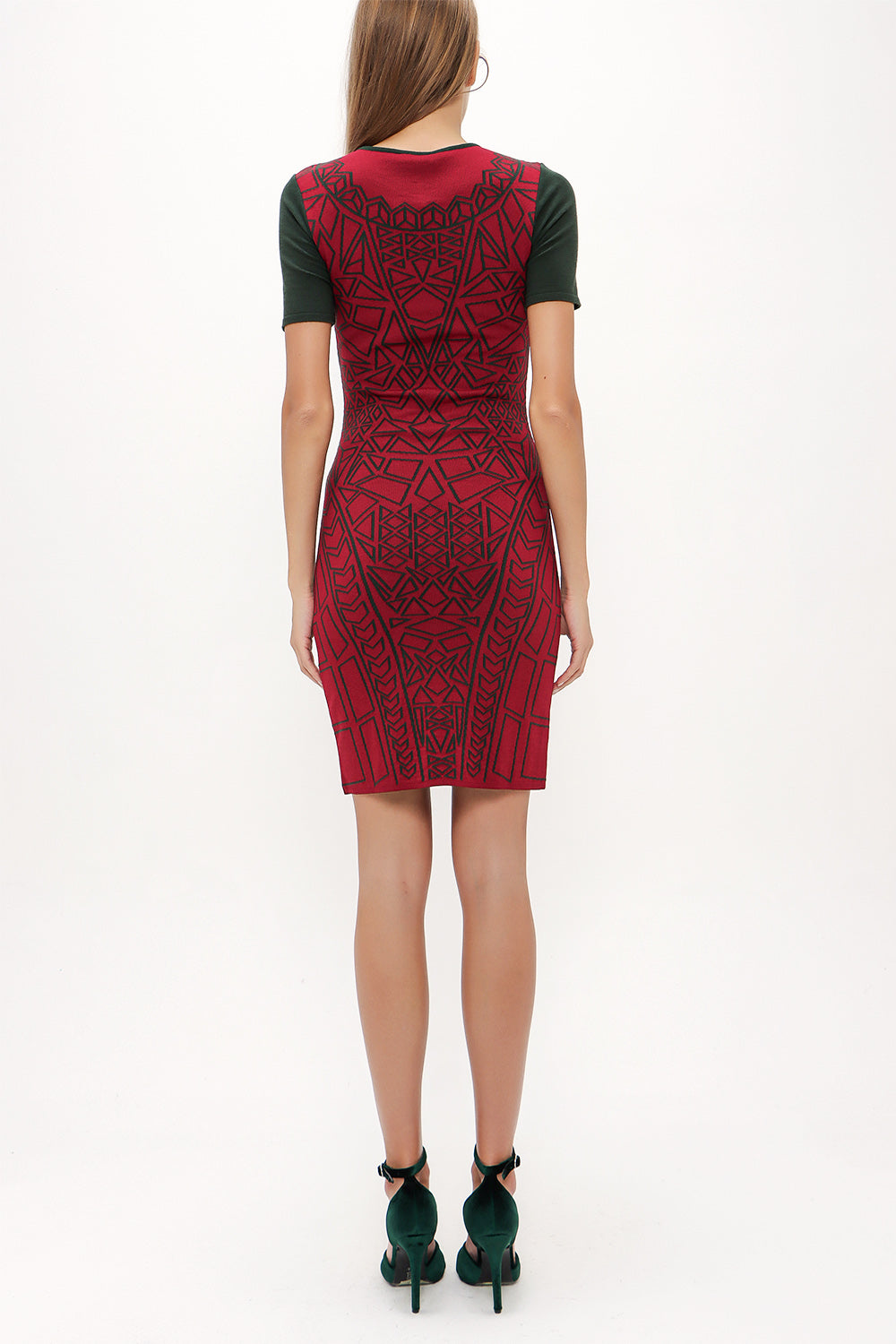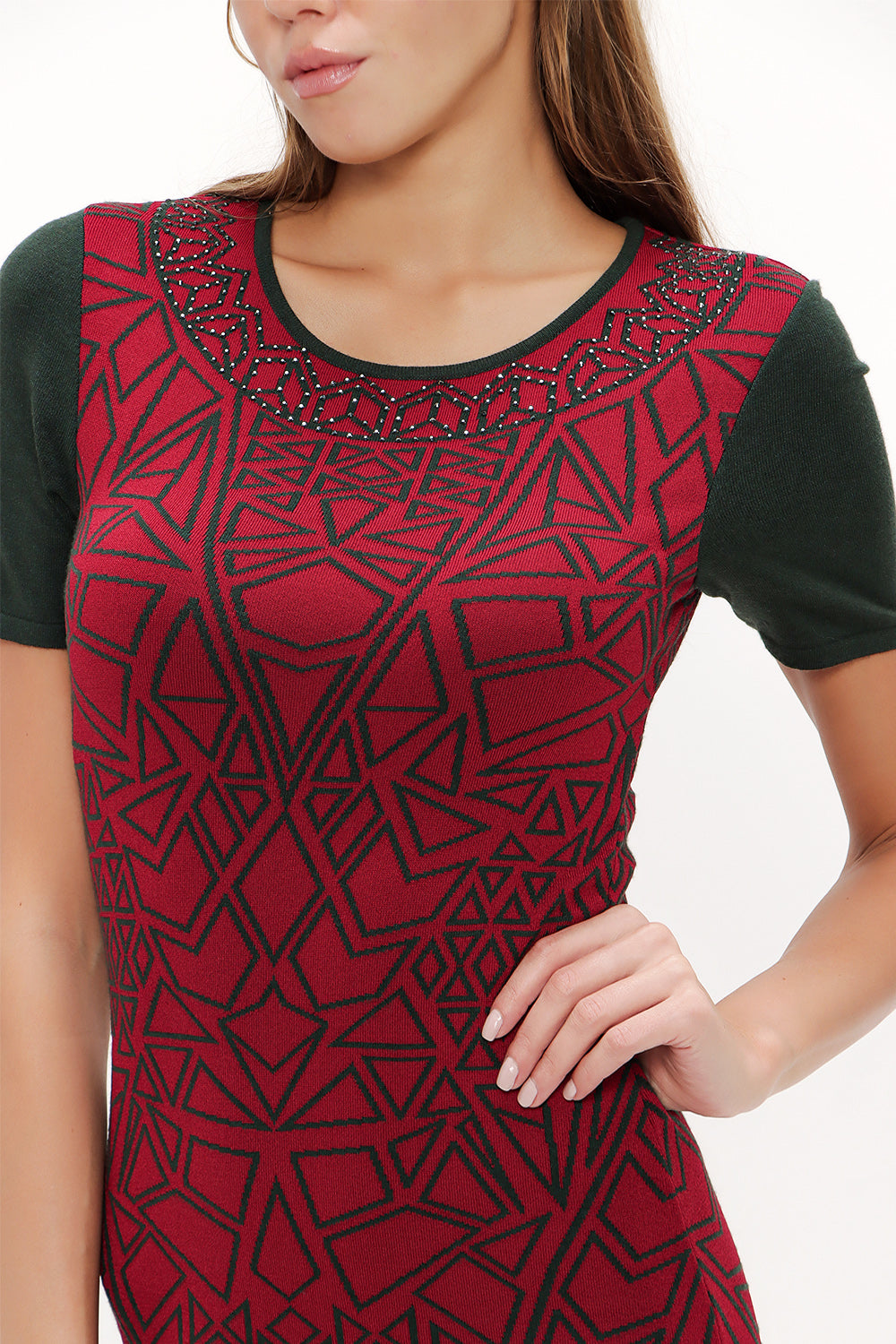 Green Printed and gem knit dress 28563