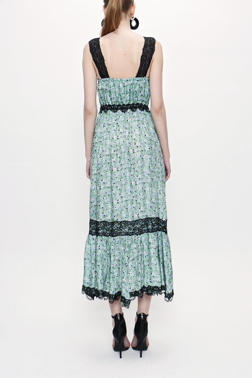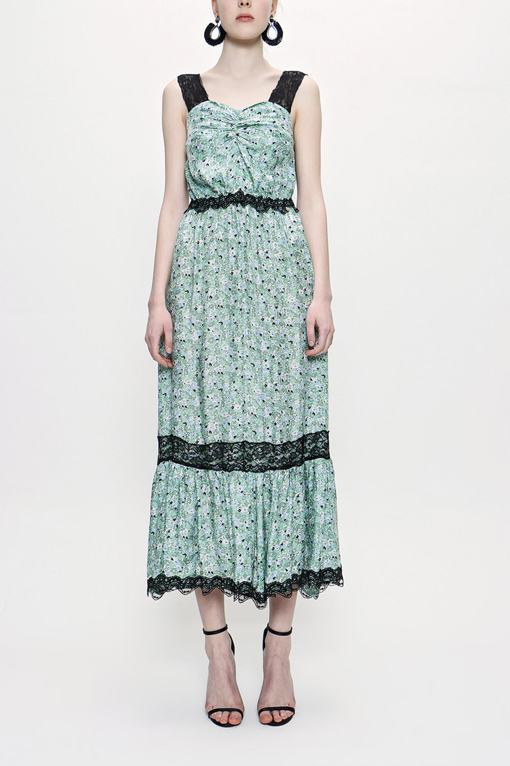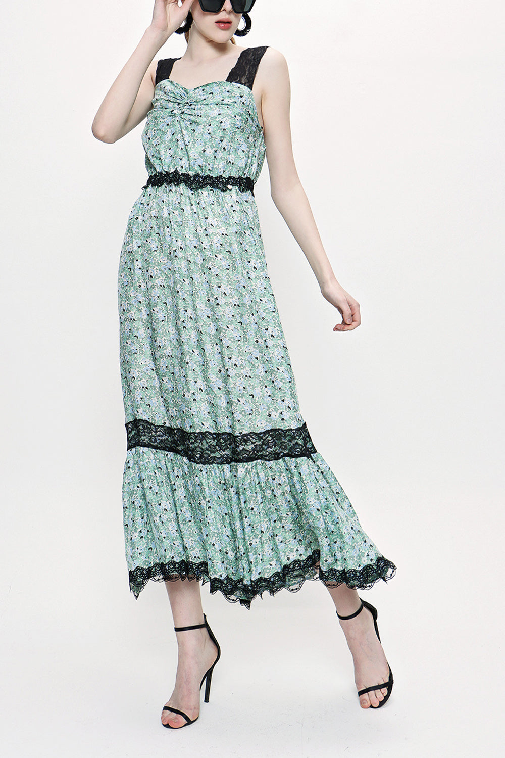 Green Sleevless Lace dress 93799