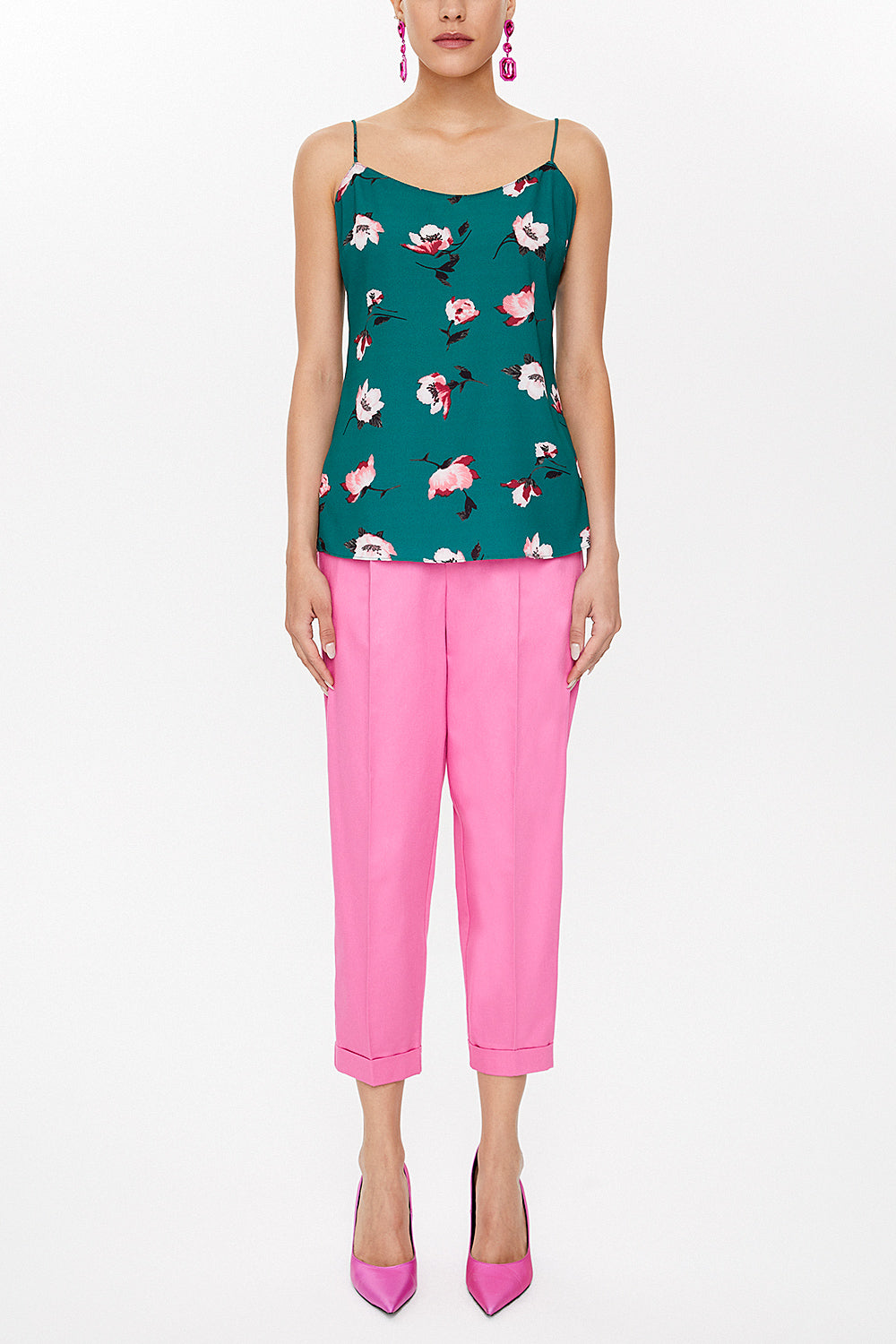 Green Spaghetti straps blouse 19756